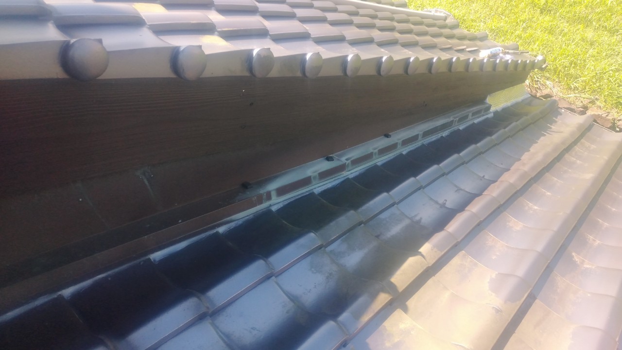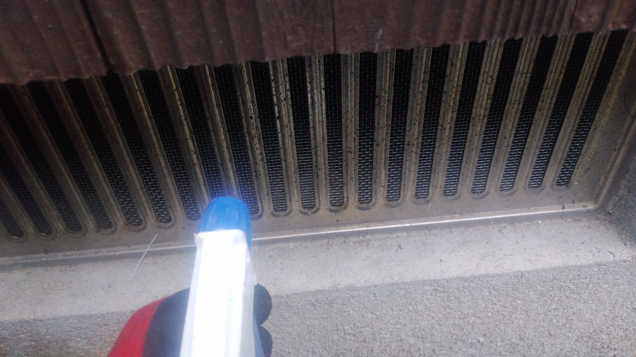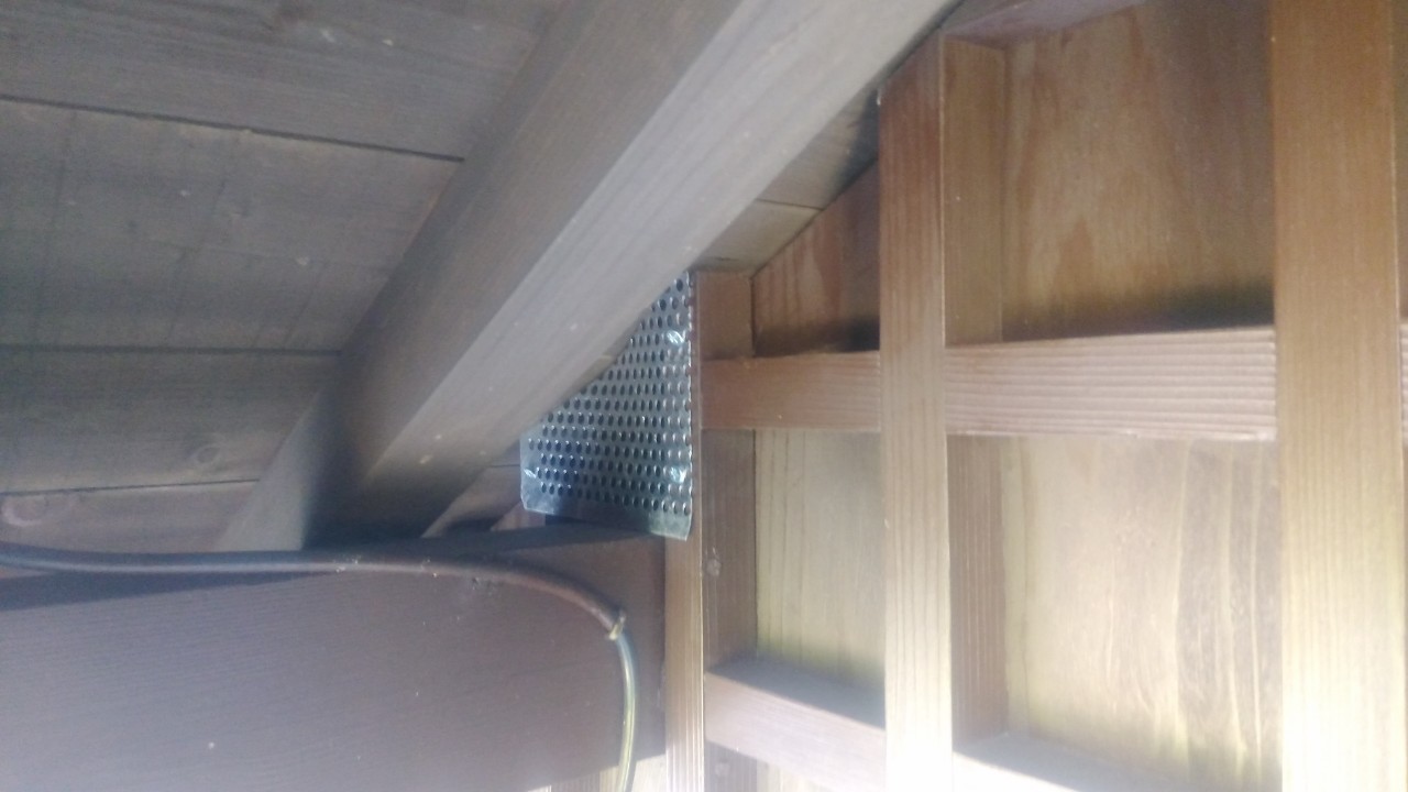 続いて、ネズミ、イタチの再侵入を防ぐために、パンチングメタルや金網、コーキング剤などを用いて侵入経路の封鎖を行います。