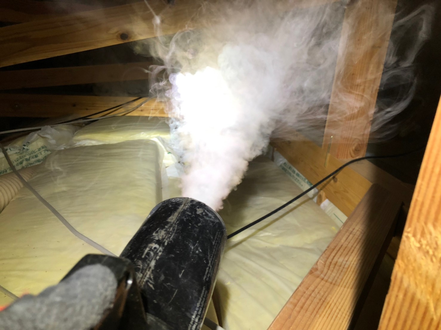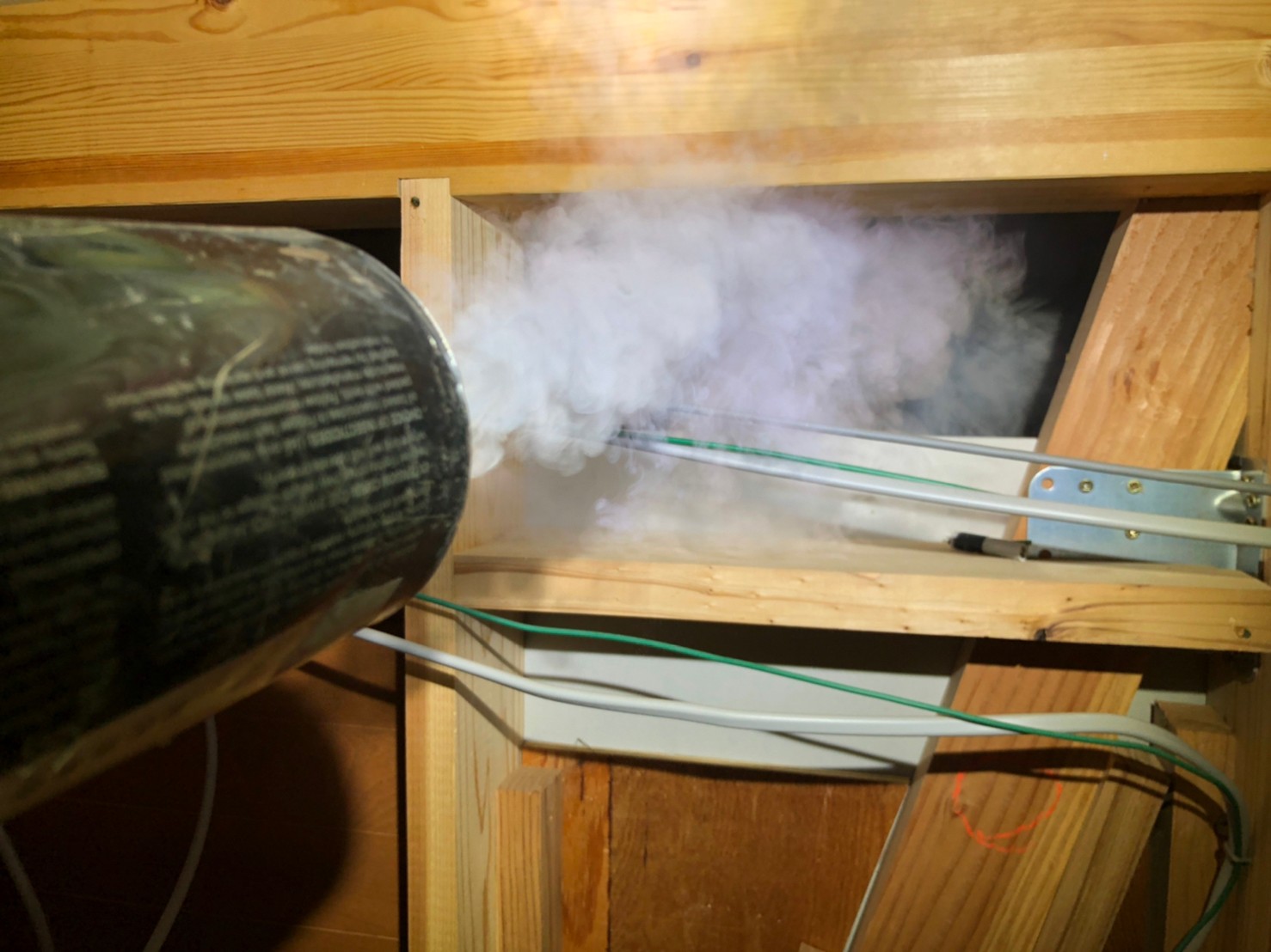 まずは、燻煙剤と呼ばれる薬剤を天井裏や床下に投入することで、コウモリを追い出していきます。