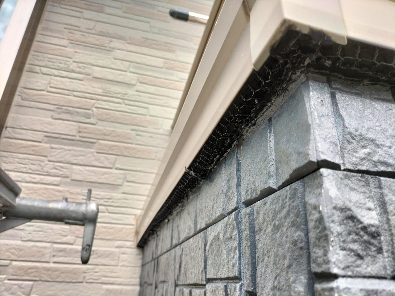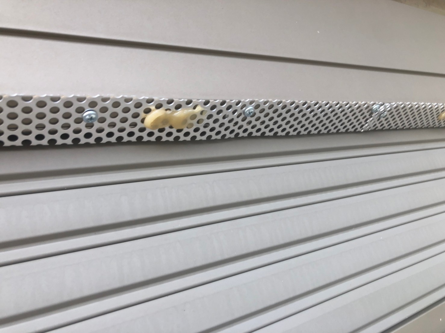 続いて、パンチングメタルや金網、コーキング剤などを用いて、あらゆる侵入経路を封鎖していきます。これによりコウモリに限らず、他の害獣の再侵入も防ぐことができます。