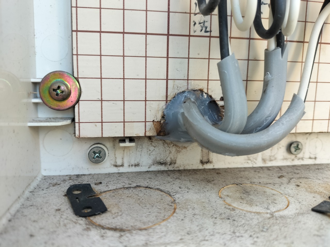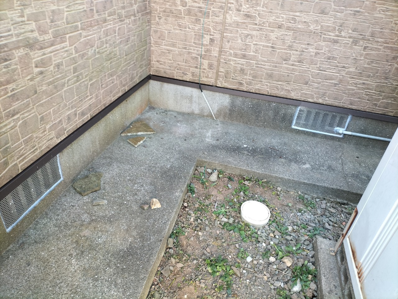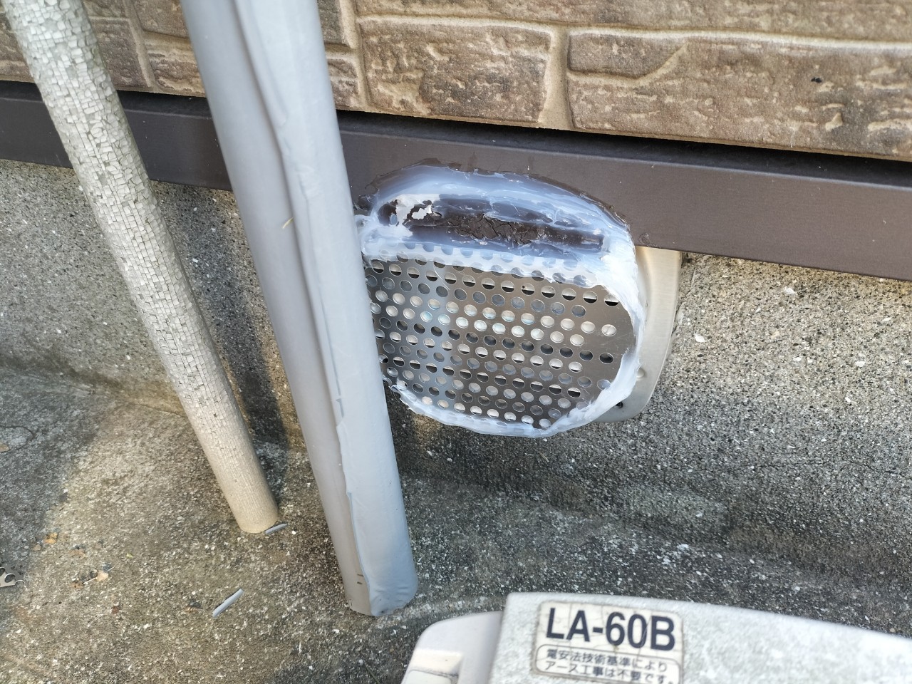 床下通風口や換気口、エアコン配管の隙間等がネズミ、イタチの侵入経路と疑われました。