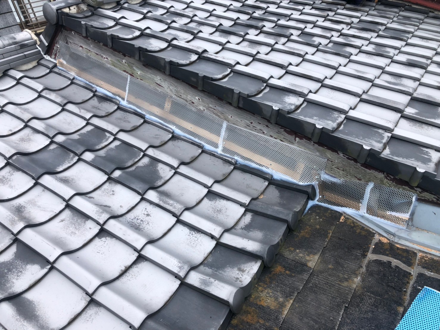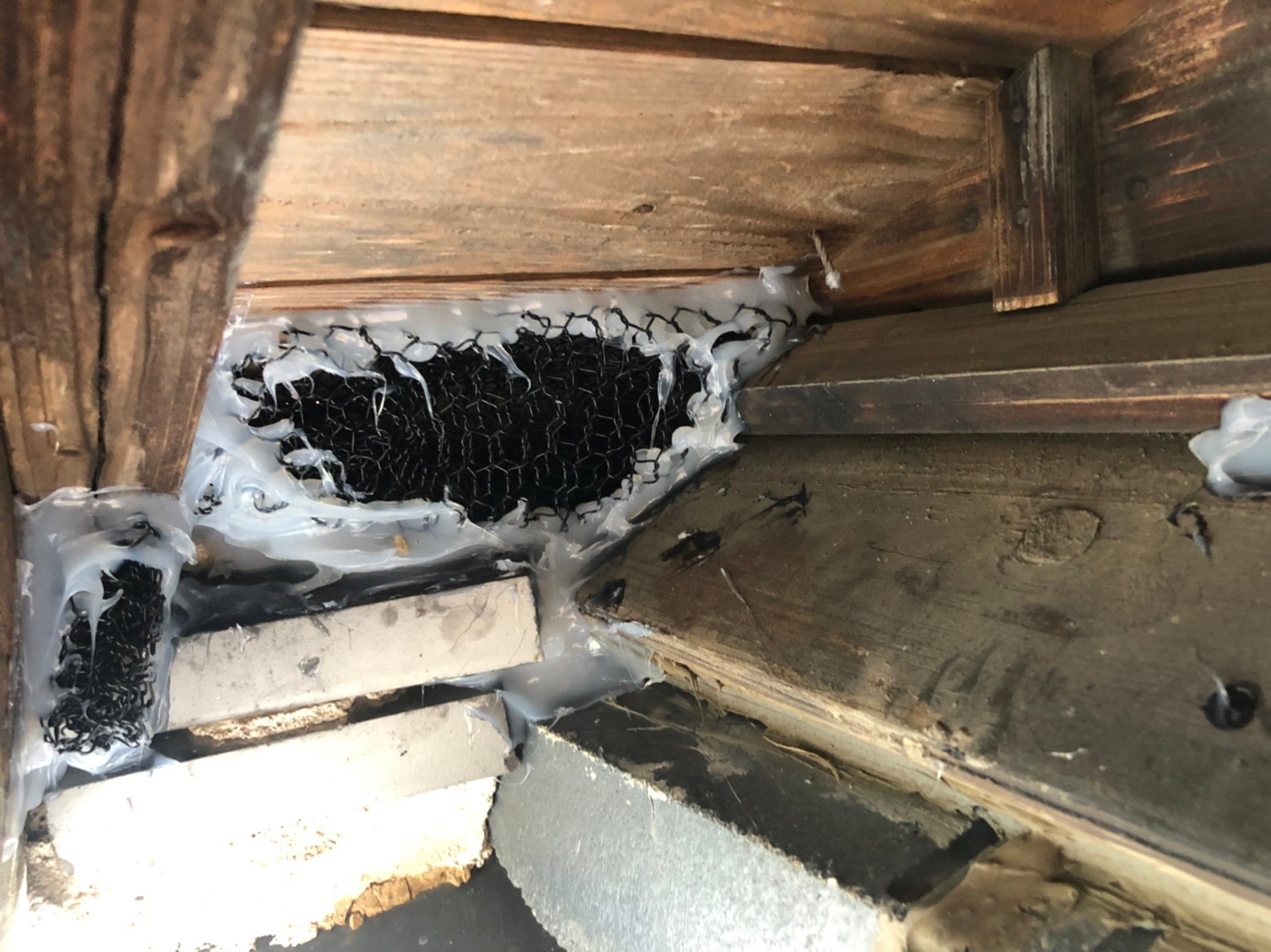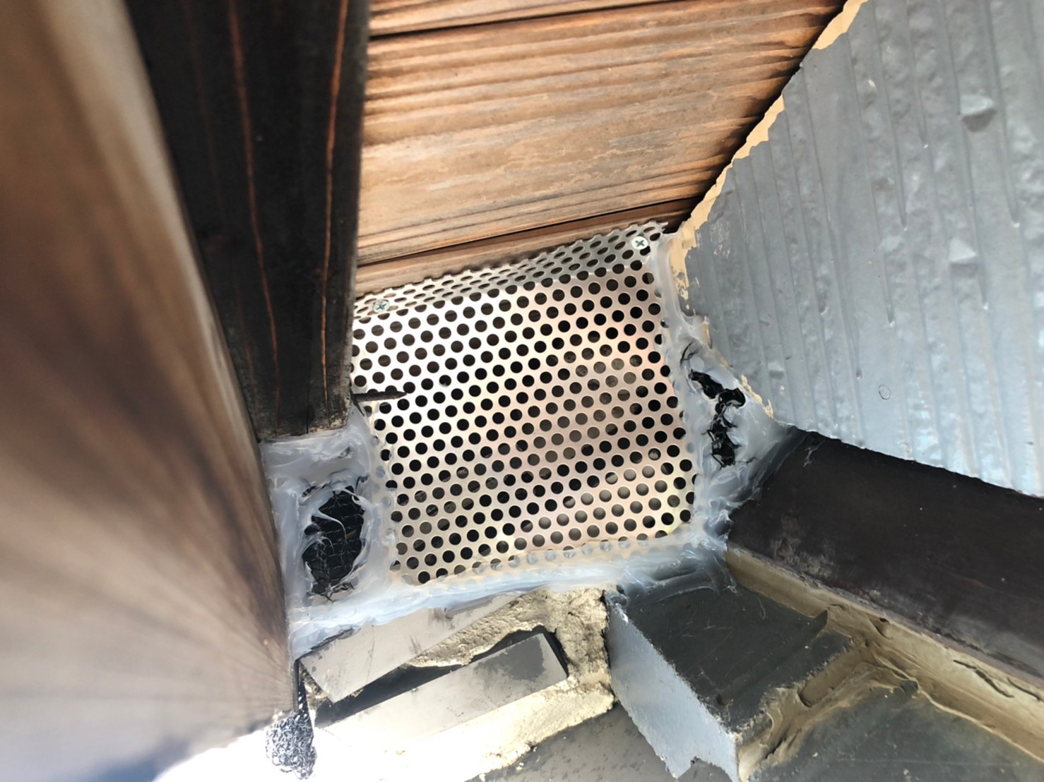 続いて、イタチの再侵入を防ぐために、パンチングメタルや金網、コーキング剤などを用いて侵入経路の封鎖を行います。