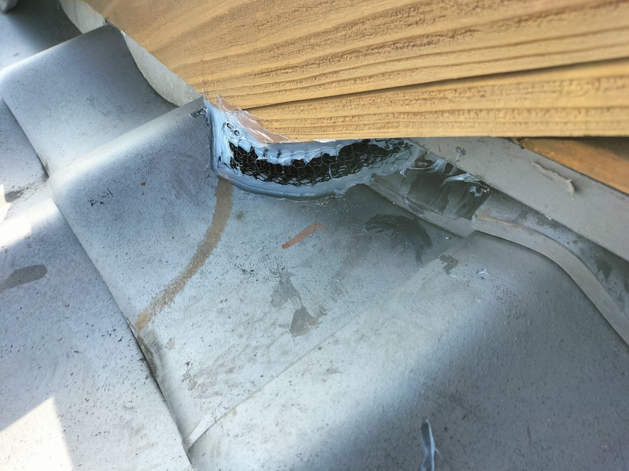 続いて、ネズミ、イタチの再侵入を防ぐために、パンチングメタルや金網、コーキング剤などを用いて侵入経路の封鎖を行います。