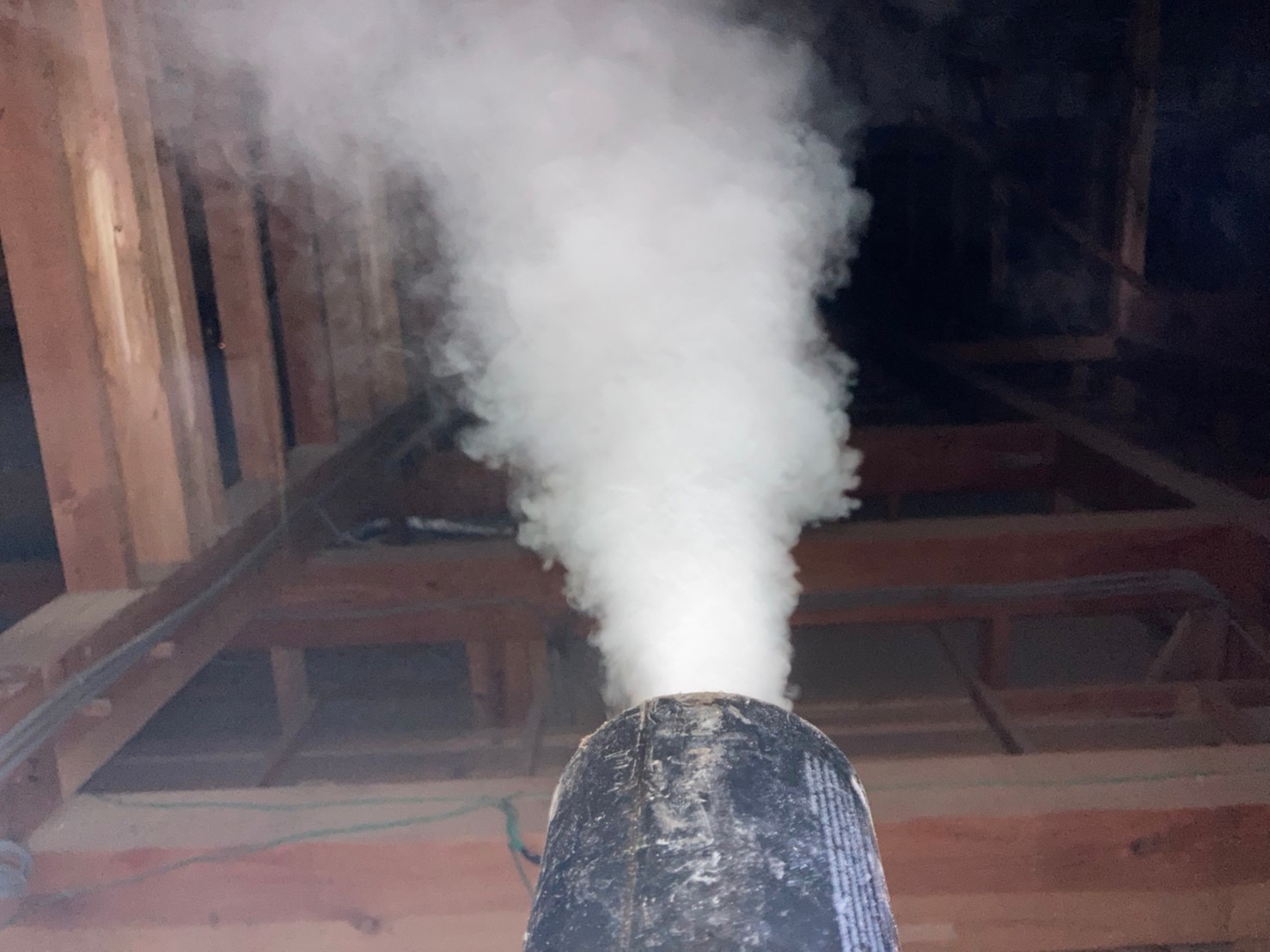 まずは、燻煙剤を使って屋内に潜んでいるネズミ、イタチを追い出します。