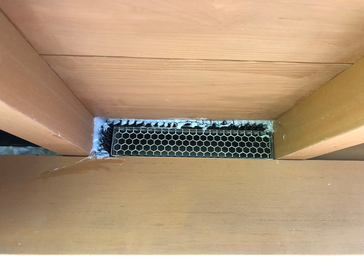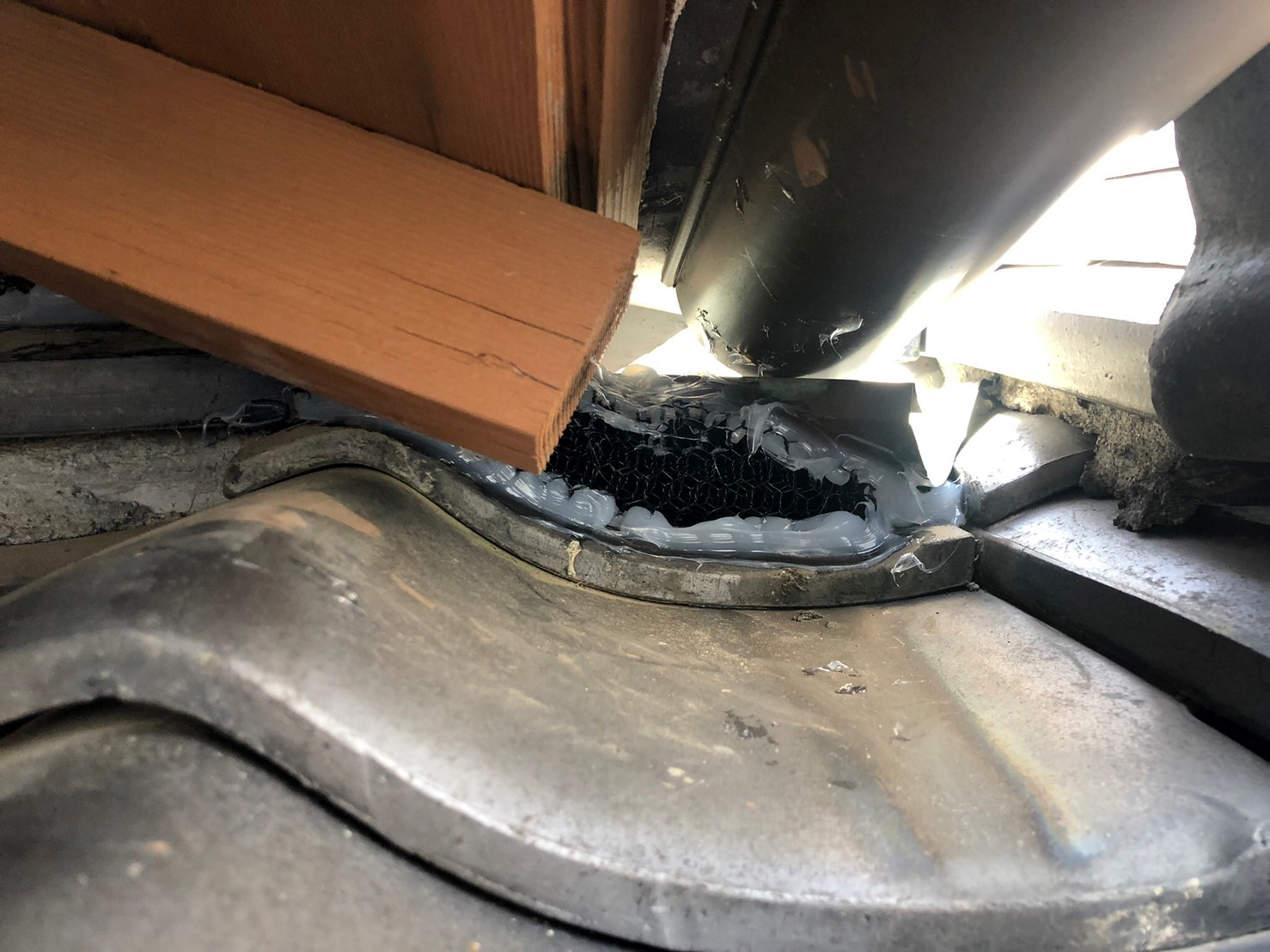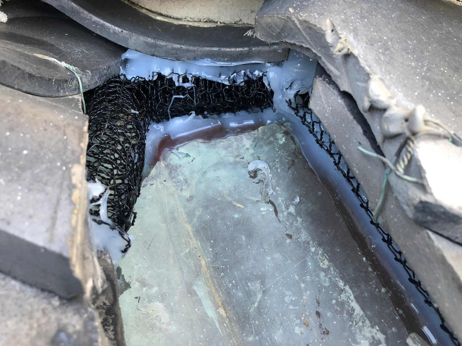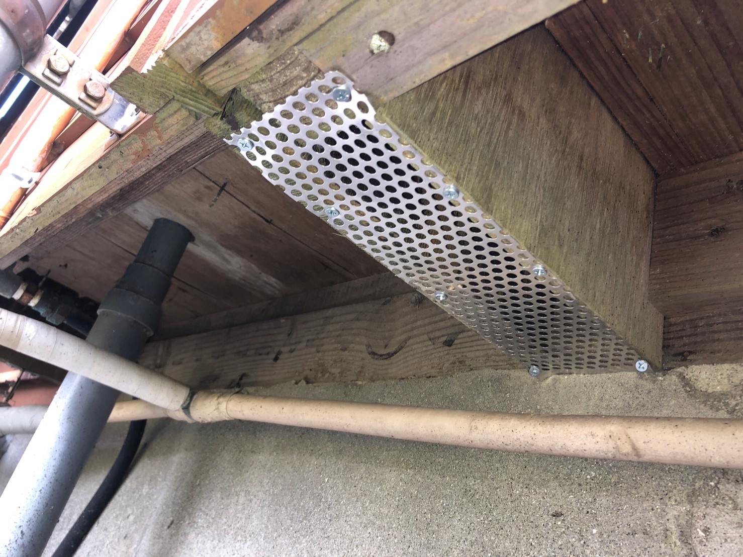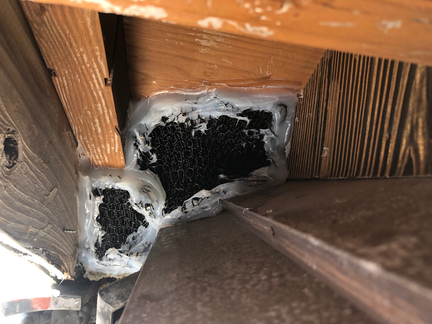 続いて、パンチングメタルや金網、コーキング剤などを用いて、あらゆる侵入経路を封鎖していきます。これによりイタチに限らず、他の害獣の再侵入も防ぐことができます。