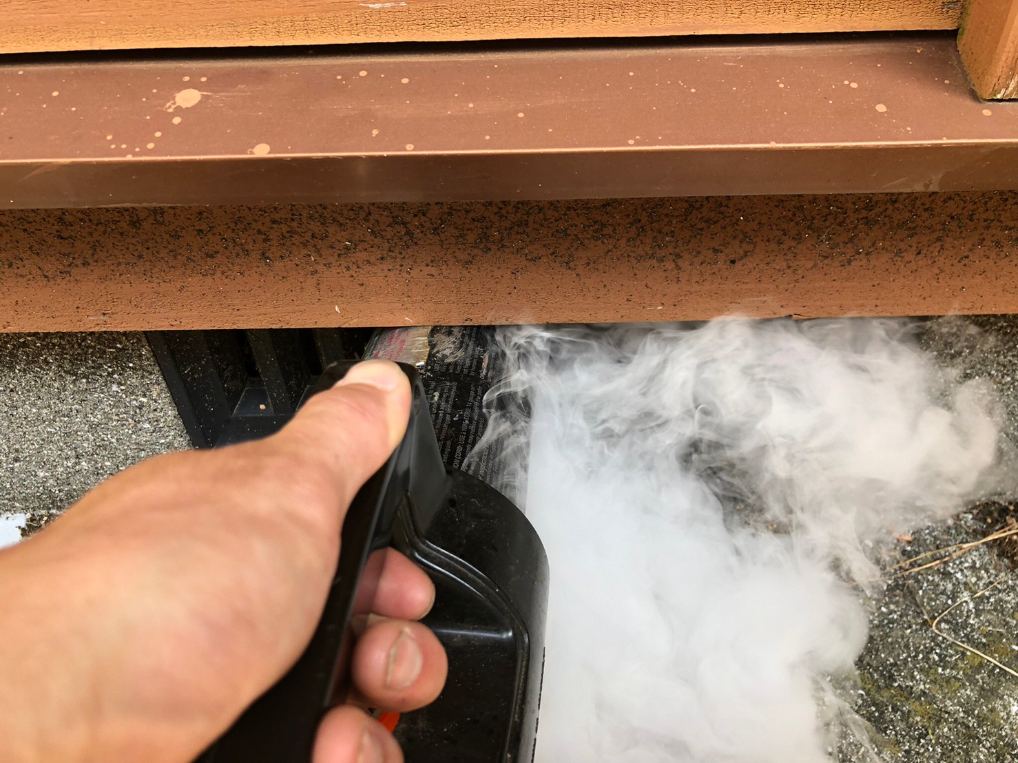 まずは、燻煙剤と呼ばれる薬剤を天井裏や床下に投入することで、イタチを追い出していきます。
