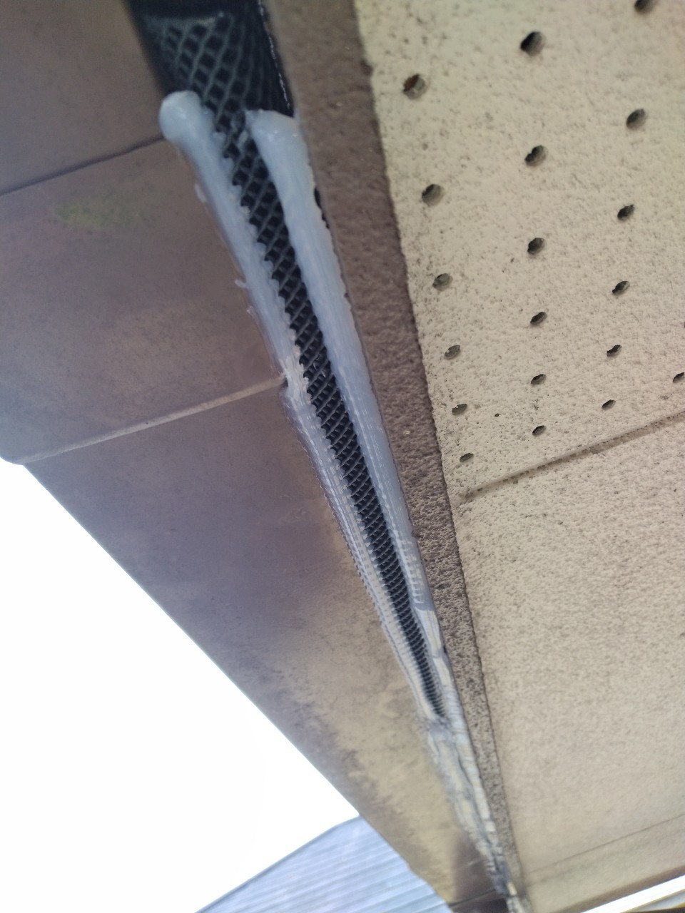 続いて、コウモリの再侵入を防ぐために、パンチングメタルや金網、コーキング剤などを用いて侵入経路の封鎖を行います。