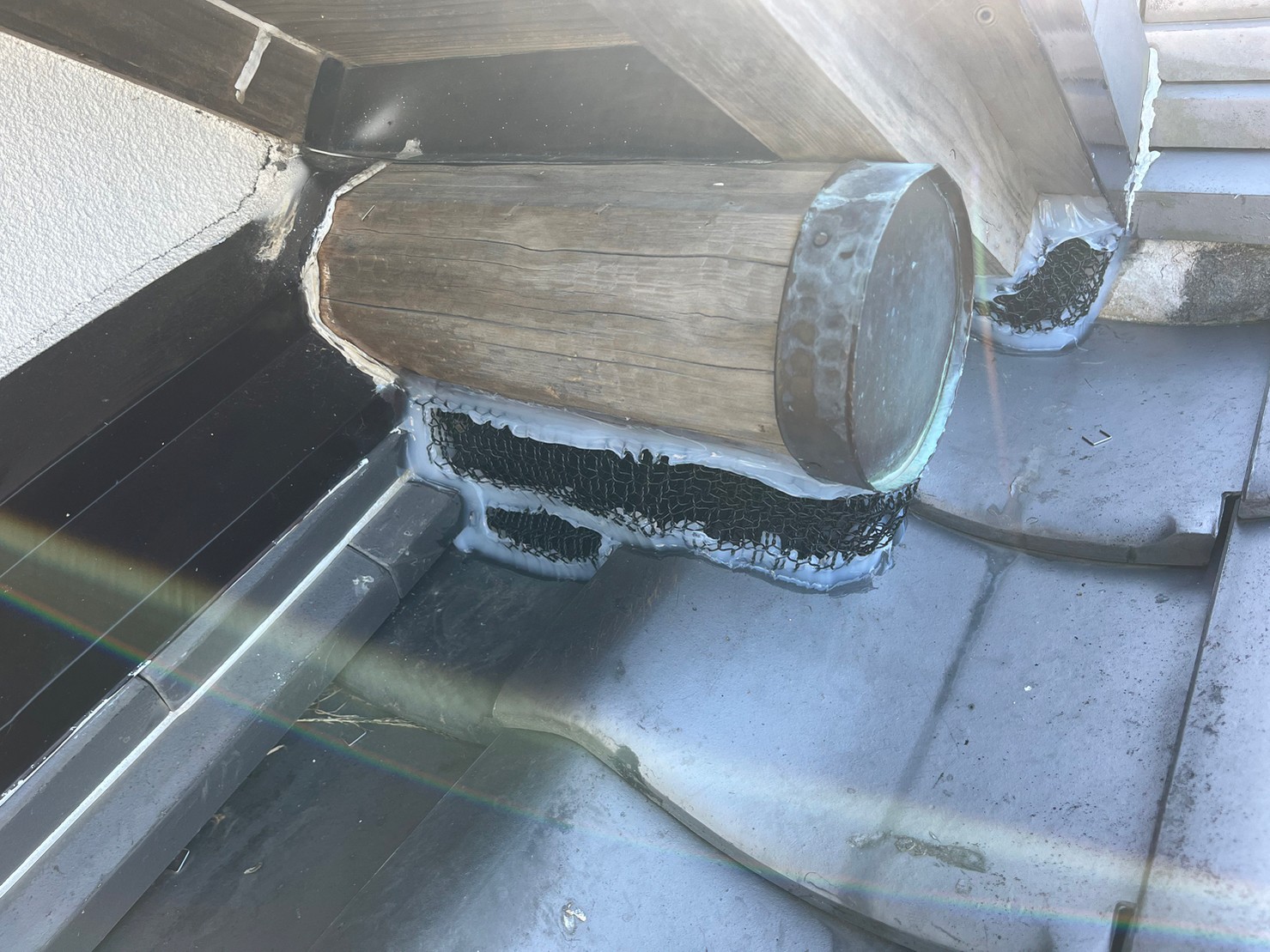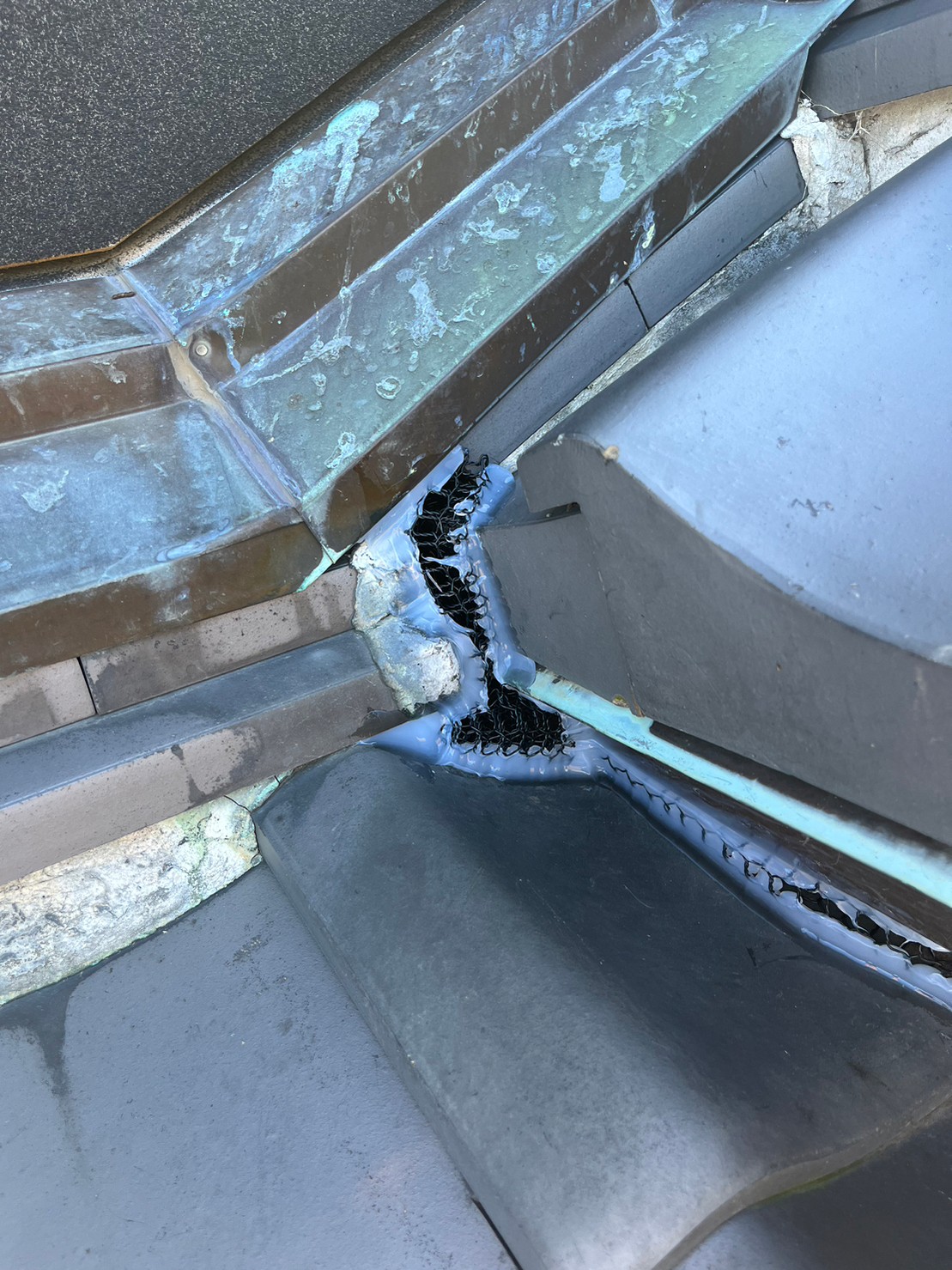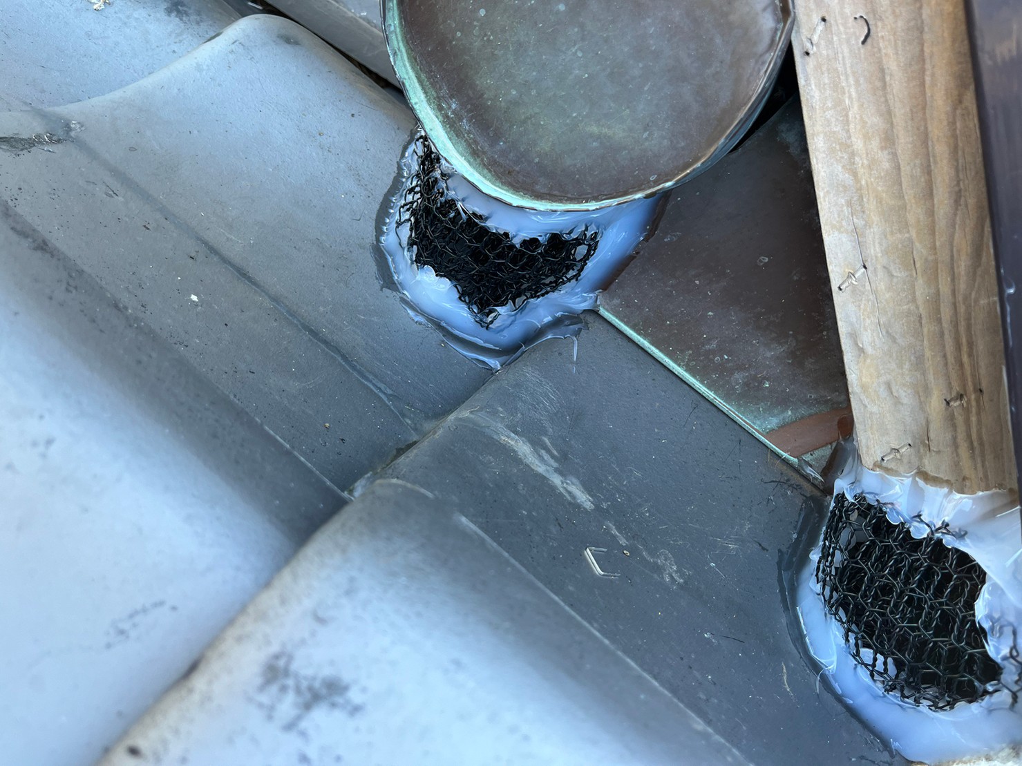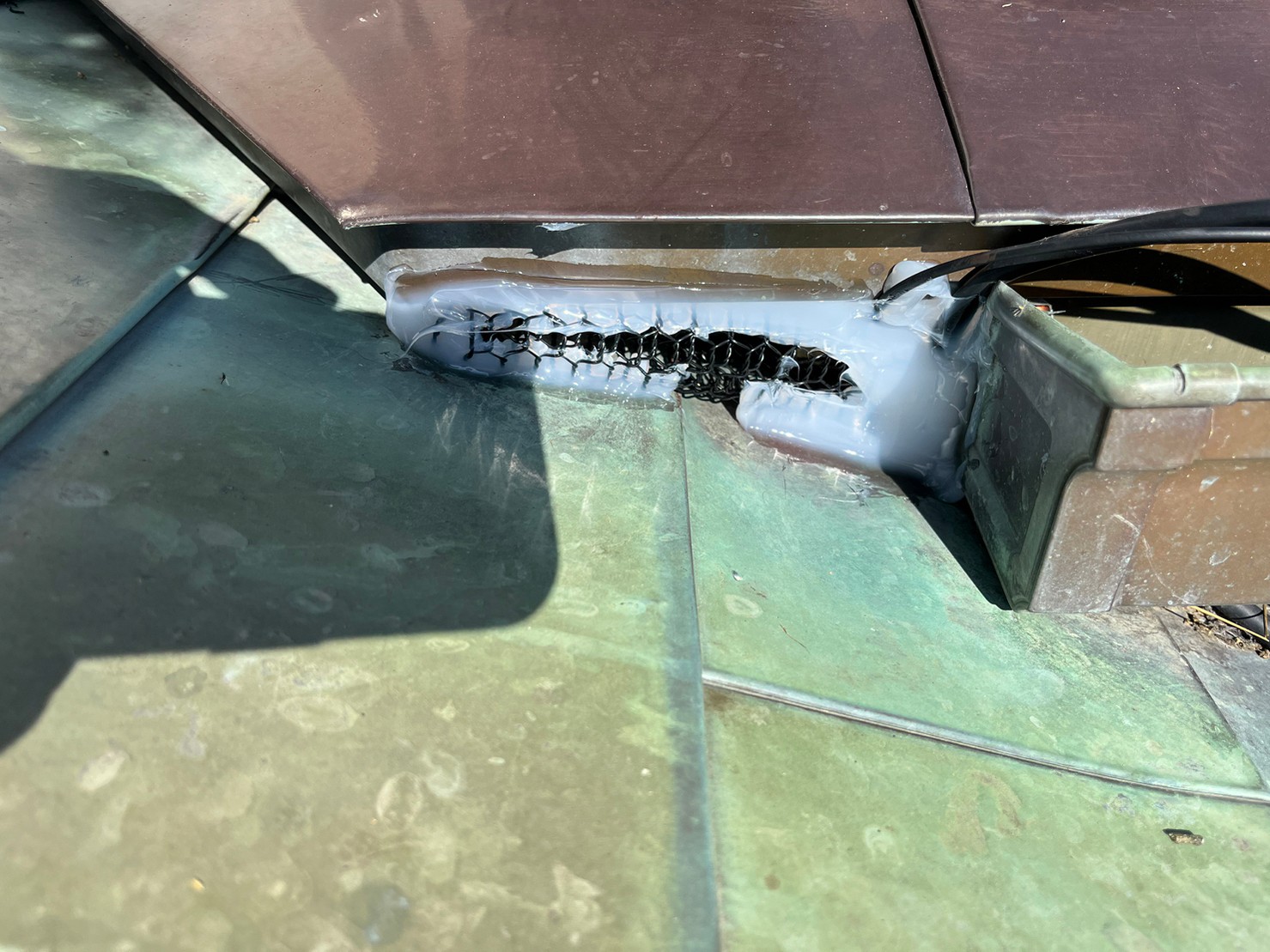 続いて、パンチングメタルや金網、コーキング剤などを用いて、あらゆる侵入経路を封鎖していきます。これによりイタチに限らず、他の害獣の再侵入も防ぐことができます。