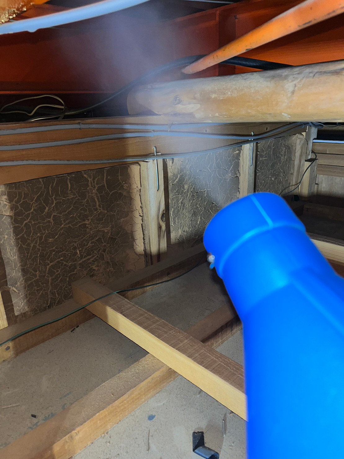封鎖作業の後は、糞清掃や殺菌・消毒、マーキング消臭、ノミ・ダニ駆除、忌避剤散布・設置といった残りの行程を順序良く行い、終了です。