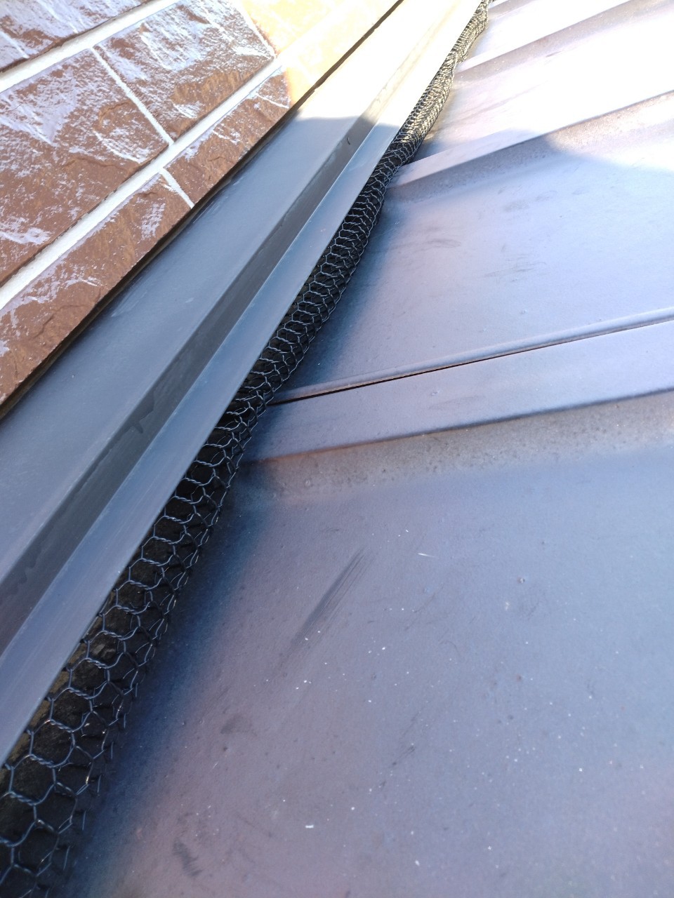続いて、ネズミの再侵入を防ぐために、パンチングメタルや金網、コーキング剤などを用いて侵入経路の封鎖を行います。