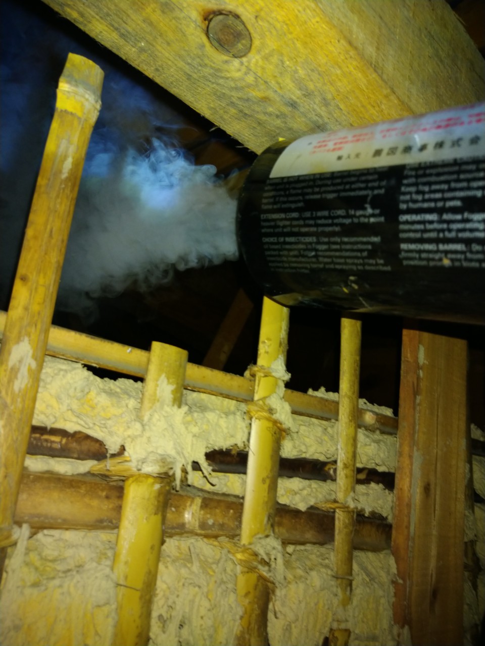 まずは、燻煙剤を使って屋内に潜んでいるネズミを追い出します。