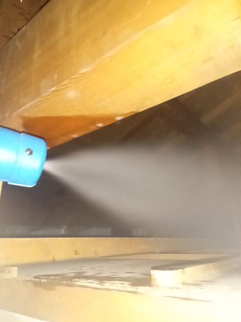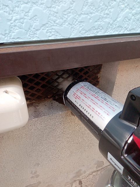 封鎖作業の後は、糞清掃や殺菌・消毒、マーキング消臭、ノミ・ダニ駆除、忌避剤散布・設置といった残りの行程を順序良く行い、終了です。