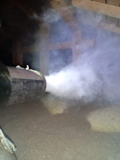 まずは、燻煙剤と呼ばれる薬剤を天井裏や床下に投入することで、コウモリを追い出していきます。