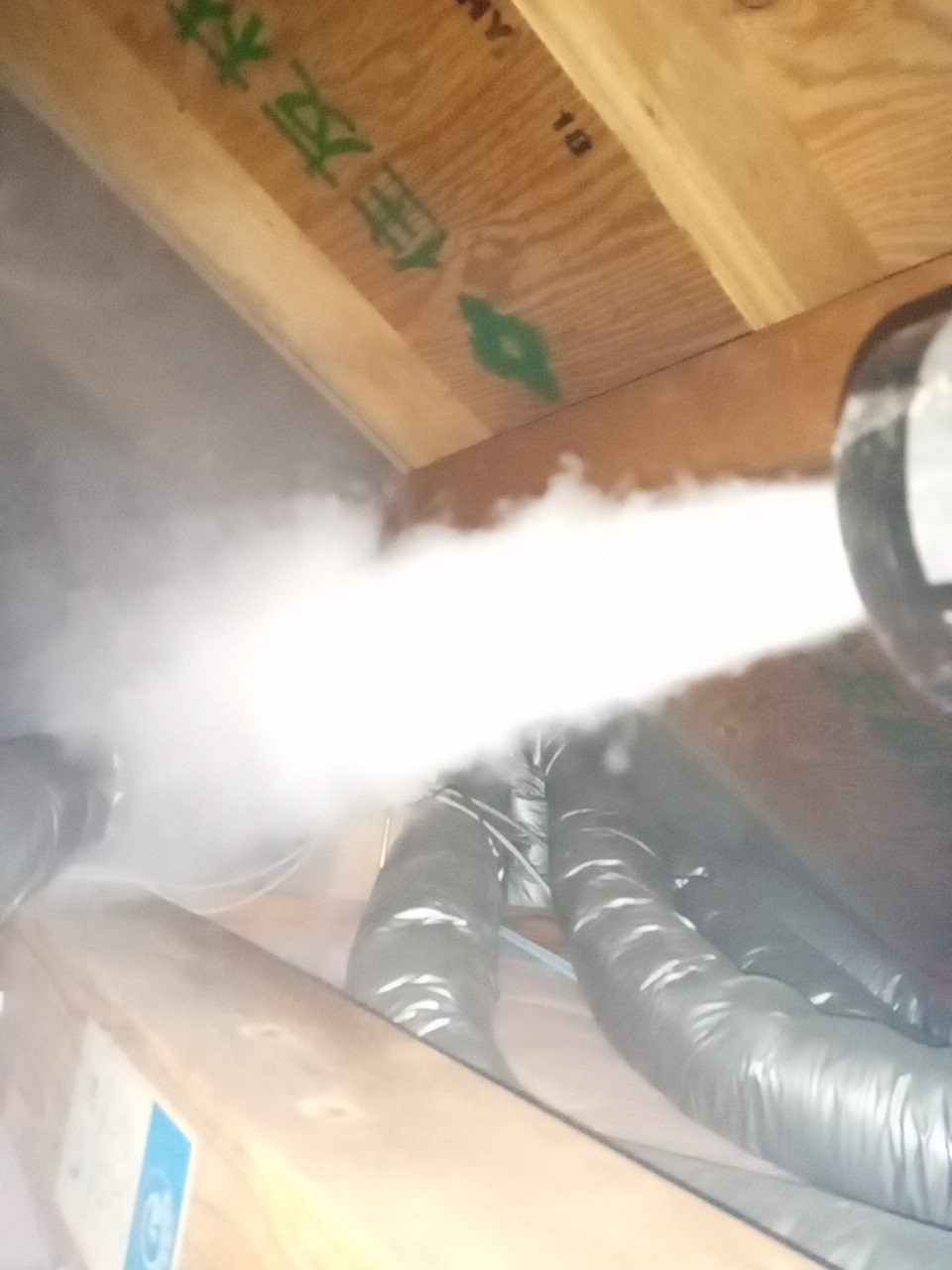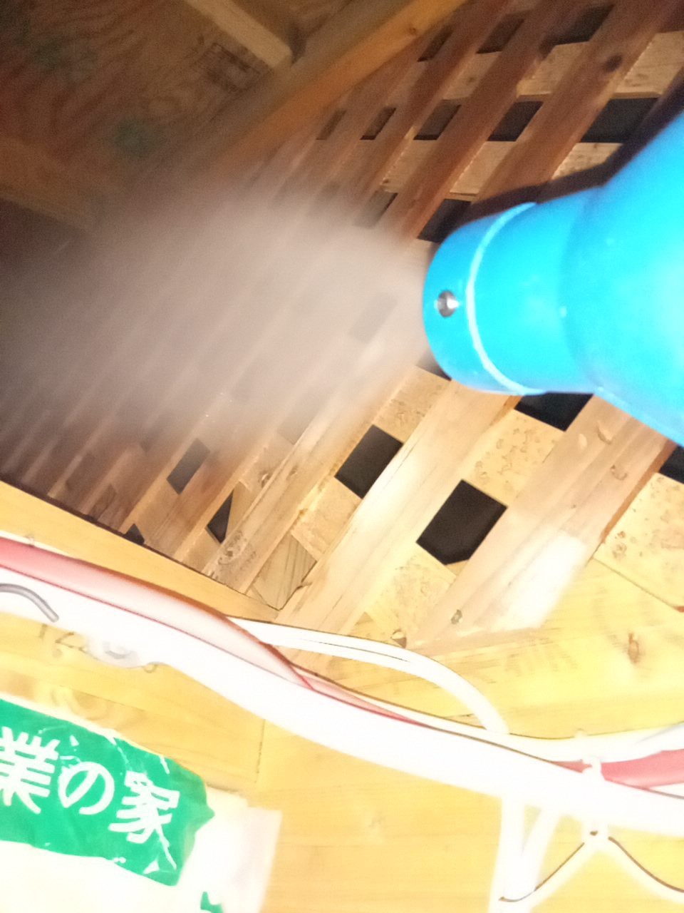 まずは、燻煙剤と呼ばれる薬剤を天井裏や床下に投入することで、コウモリを追い出していきます。