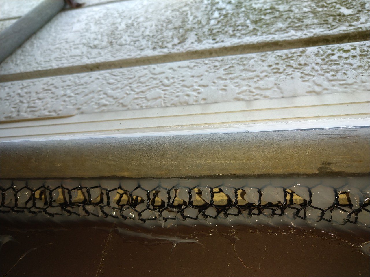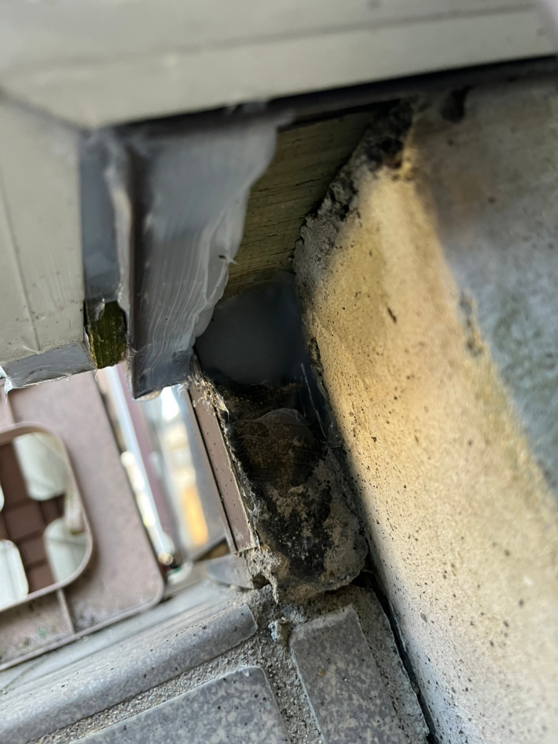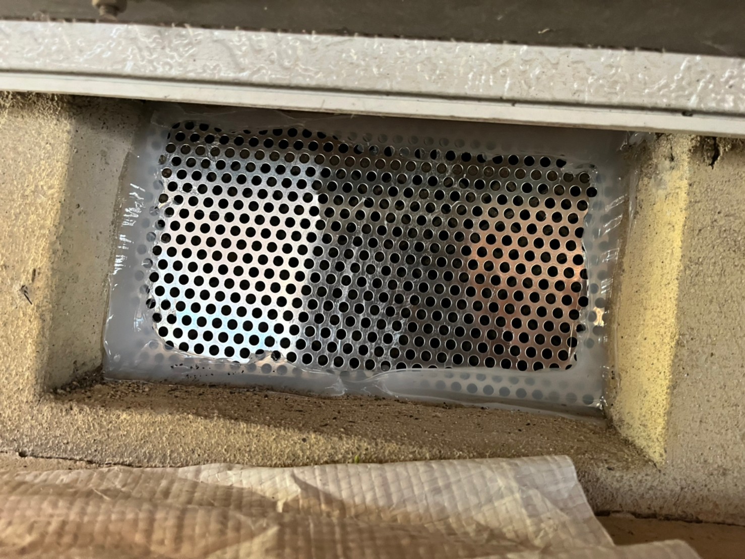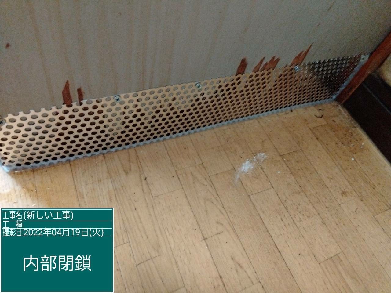 続いて、ネズミの再侵入を防ぐために、パンチングメタルや金網、コーキング剤などを用いて侵入経路の封鎖を行います。