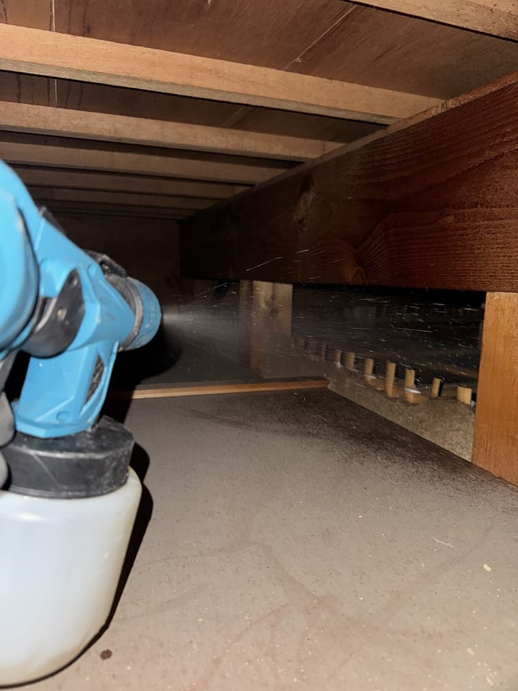 • ①床下や天井裏に潜んでいるネズミを追い出します。