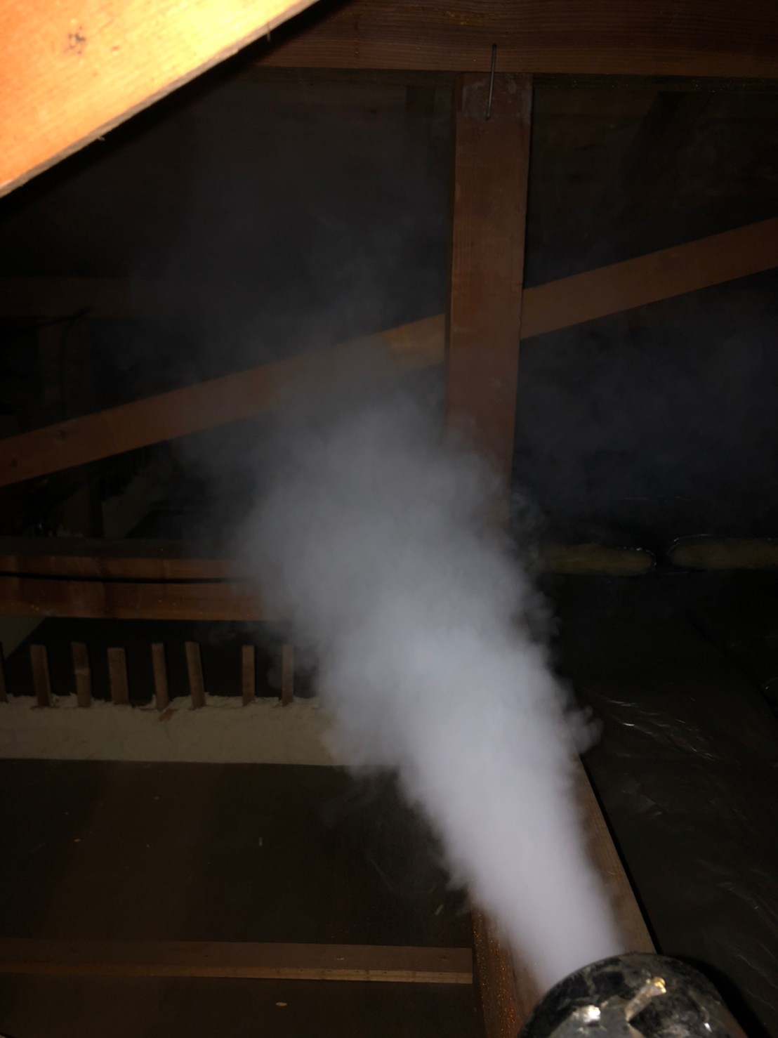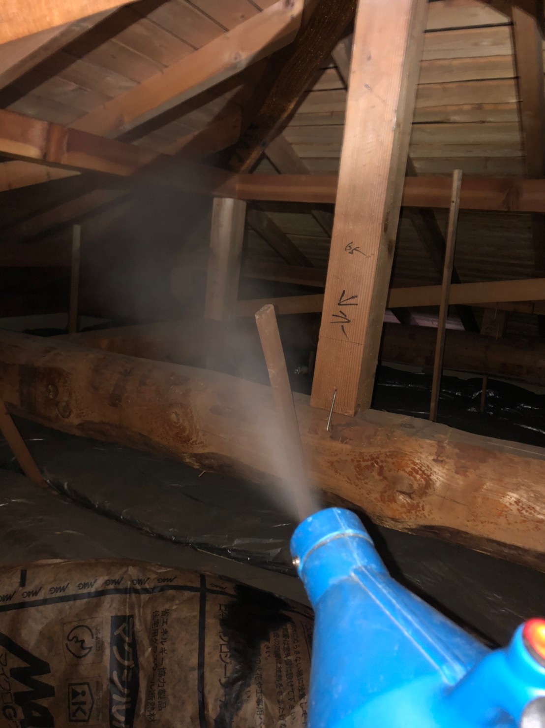 まずは、燻煙剤を使って屋内に潜んでいるコウモリを追い出します。