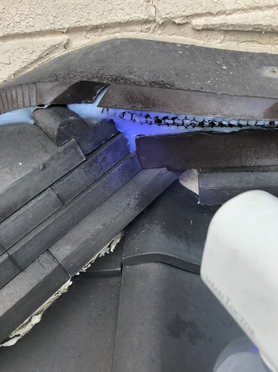 コウモリは1~2cm程度の小さな隙間から、侵入したり住み着いたりします。空中を自在に移動するコウモリの場合は侵入経路も多岐にわたるため、その封鎖を全て行うのは私たちプロでもかなり骨の折れる作業です。追い出したり忌避剤の設置だけでは、コウモリが多い地域ではすぐに被害は再発してしまいますので、侵入経路は必ずしっかりと行う必要があります。