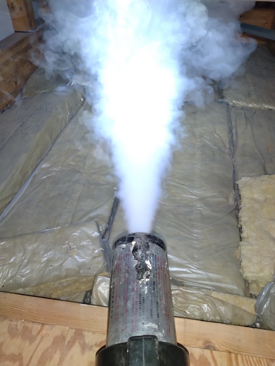 まずは、燻煙剤を使って屋内に潜んでいるコウモリを追い出します。