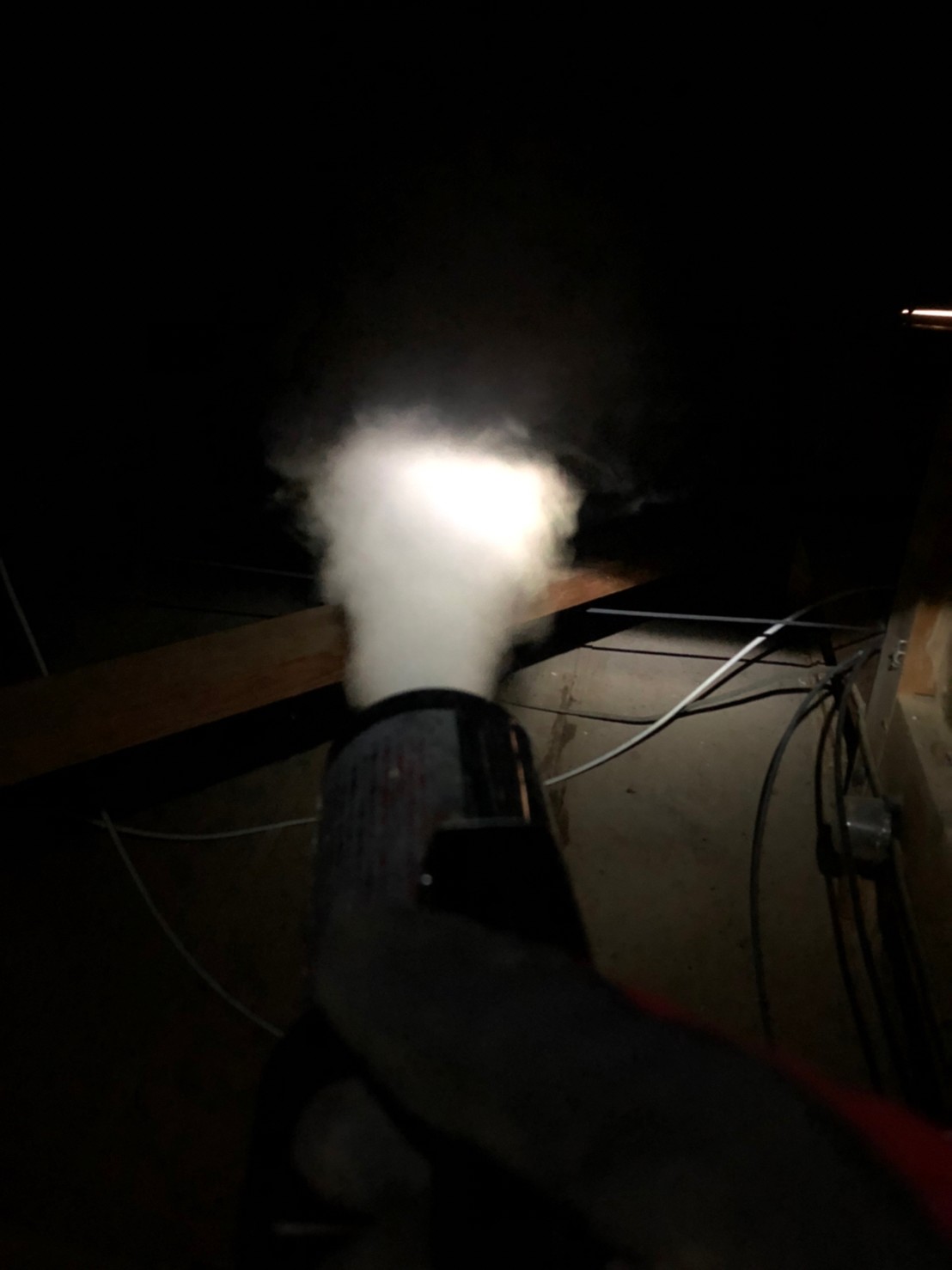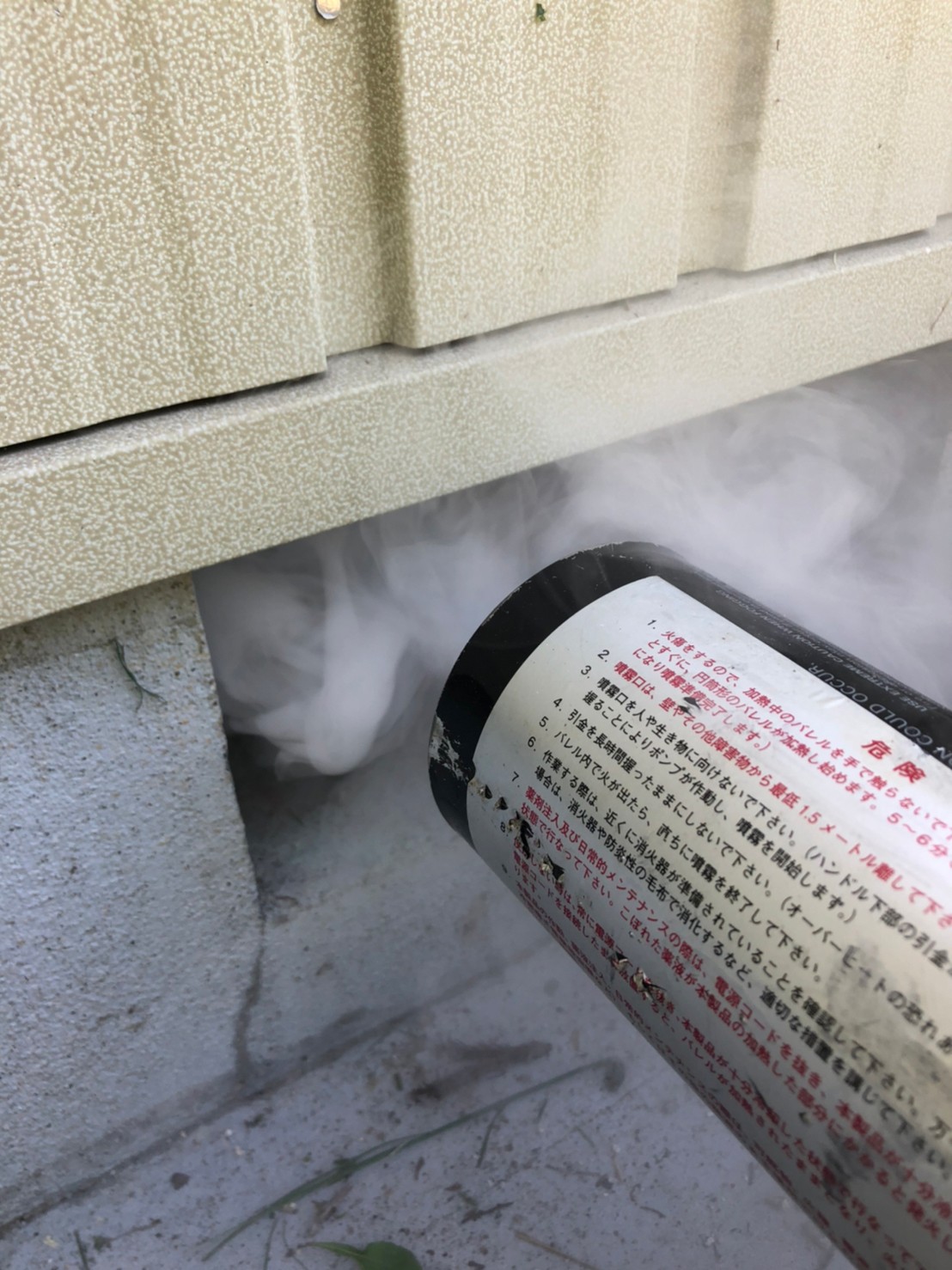 まずは、燻煙剤と呼ばれる薬剤を天井裏や床下に投入することで、ハクビシンを追い出していきます。