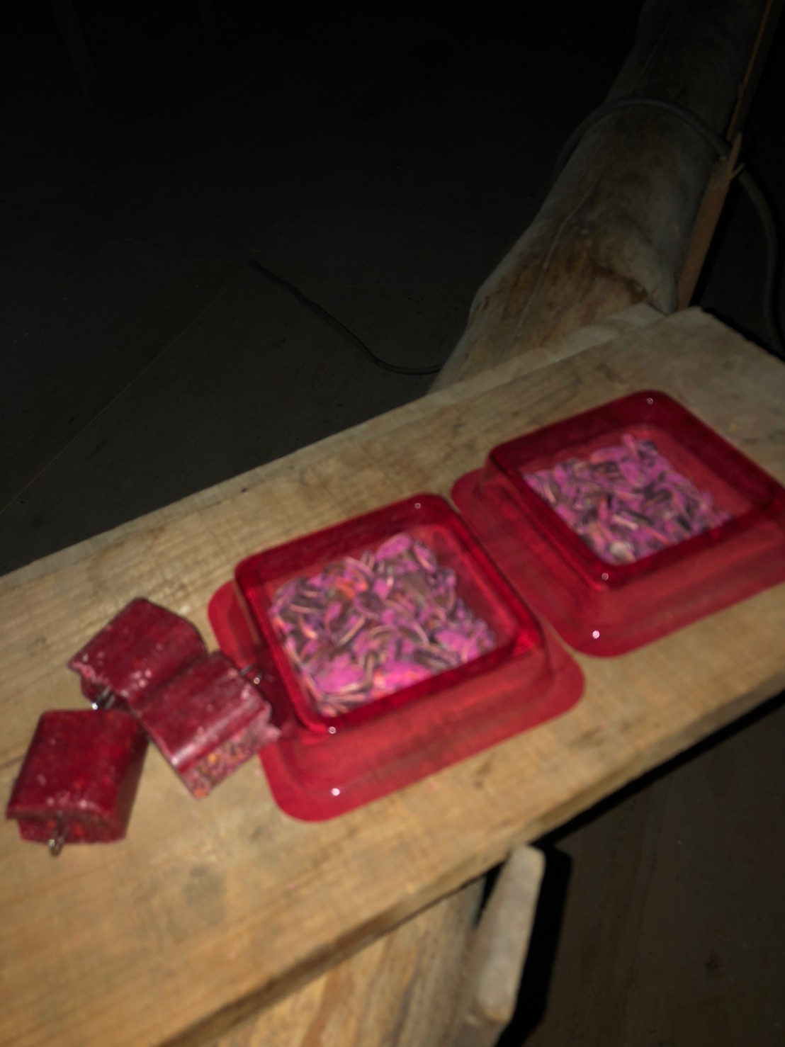 封鎖作業の後は、糞清掃やマーキング消臭、ノミ・ダニ駆除、忌避剤散布・設置、毒エサ・トラップ設置といった残りの行程を順序良く行い、終了です。