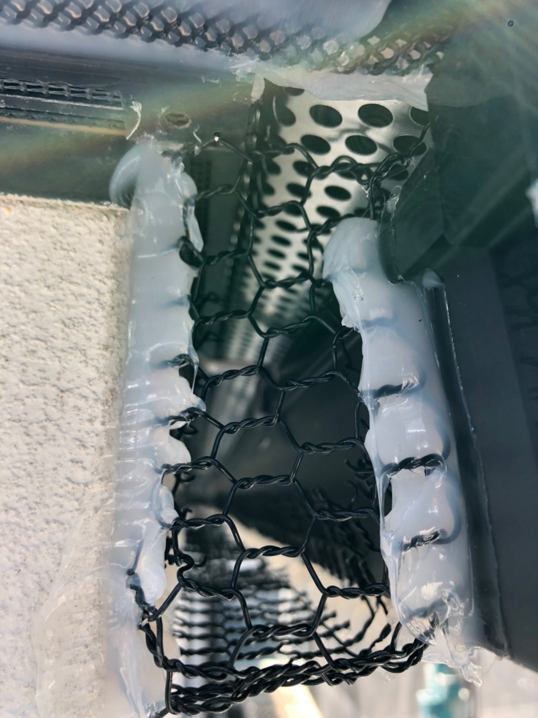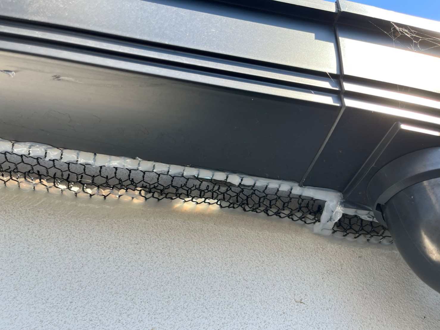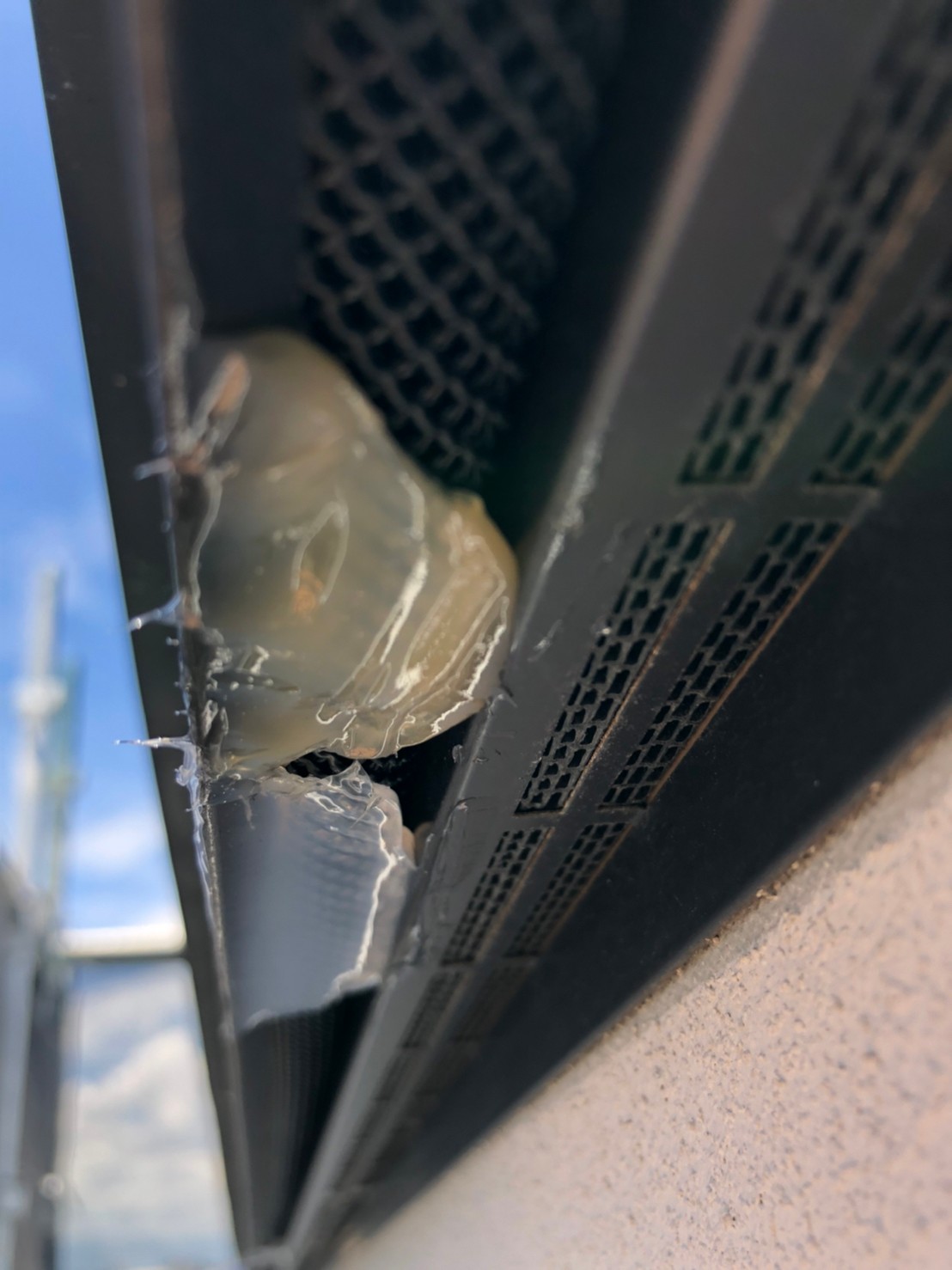 続いて、パンチングメタルや金網、コーキング剤などを用いて、あらゆる侵入経路を封鎖していきます。これによりコウモリに限らず、他の害獣の再侵入も防ぐことができます。