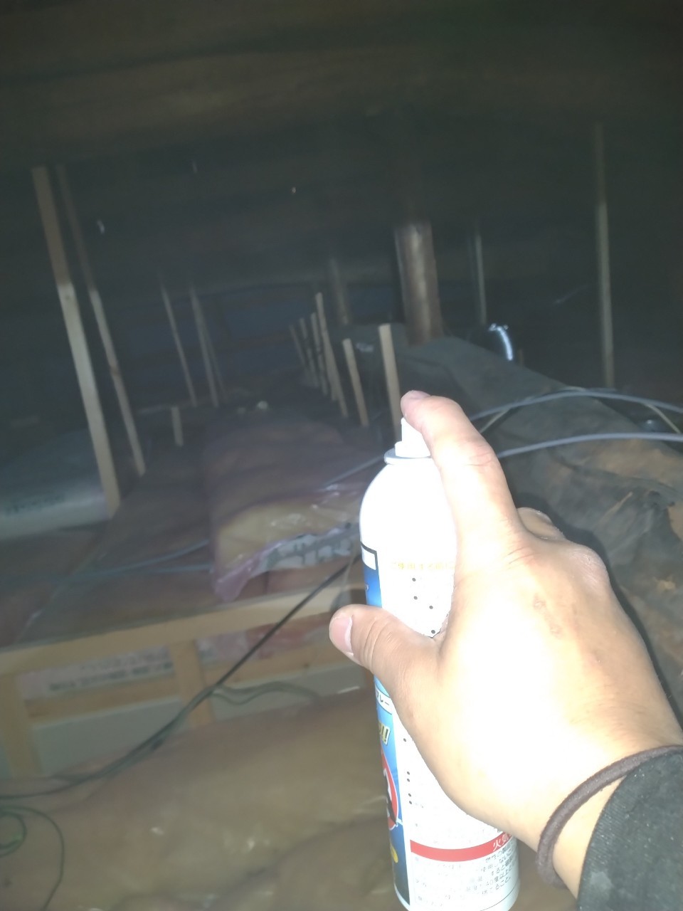 最後に、糞清掃や殺菌・消毒、マーキング消臭、ノミ・ダニ駆除、忌避剤散布・設置といった残りの作業を行い、駆除~再発防止までの工程が全て終了します。