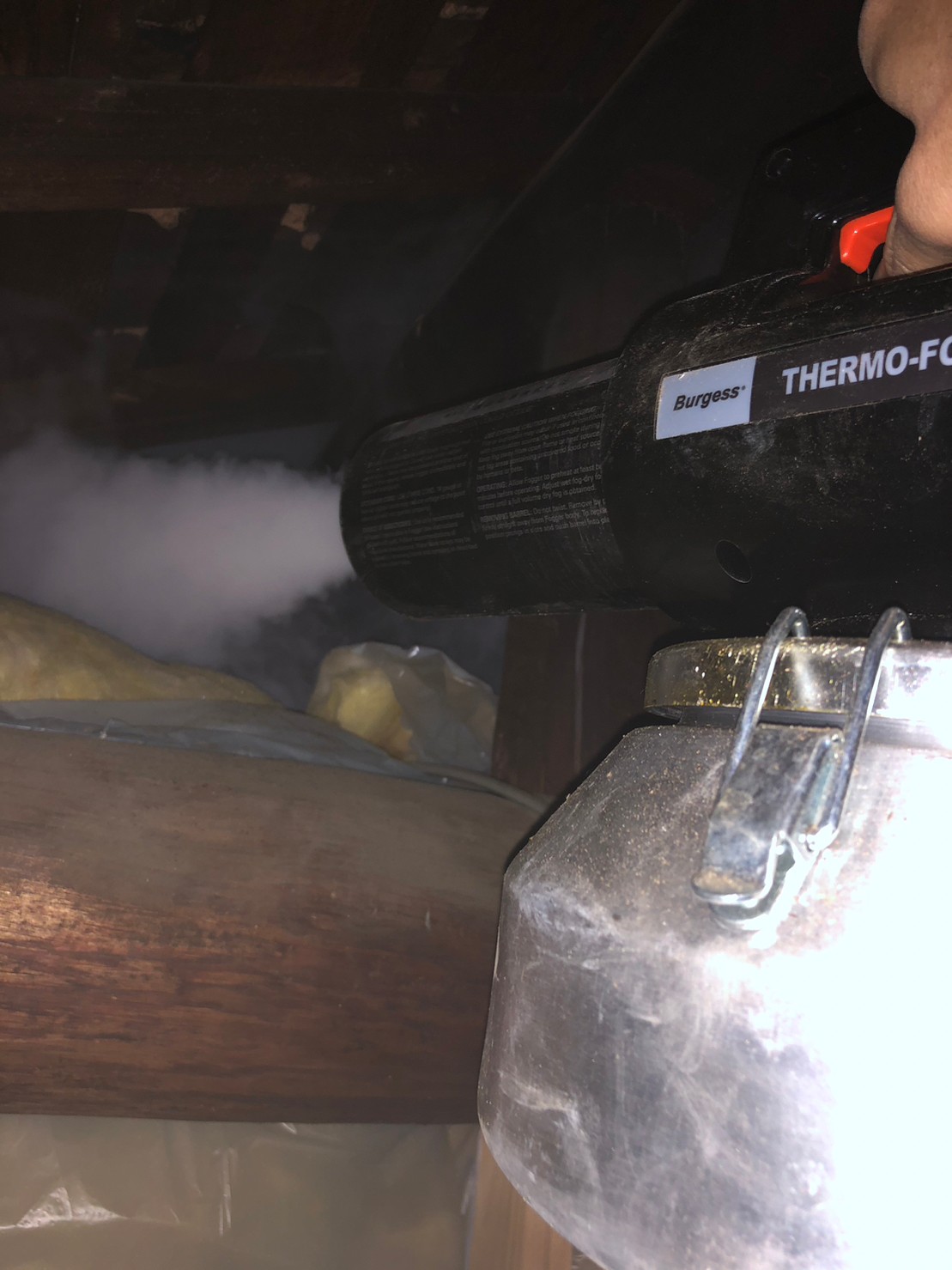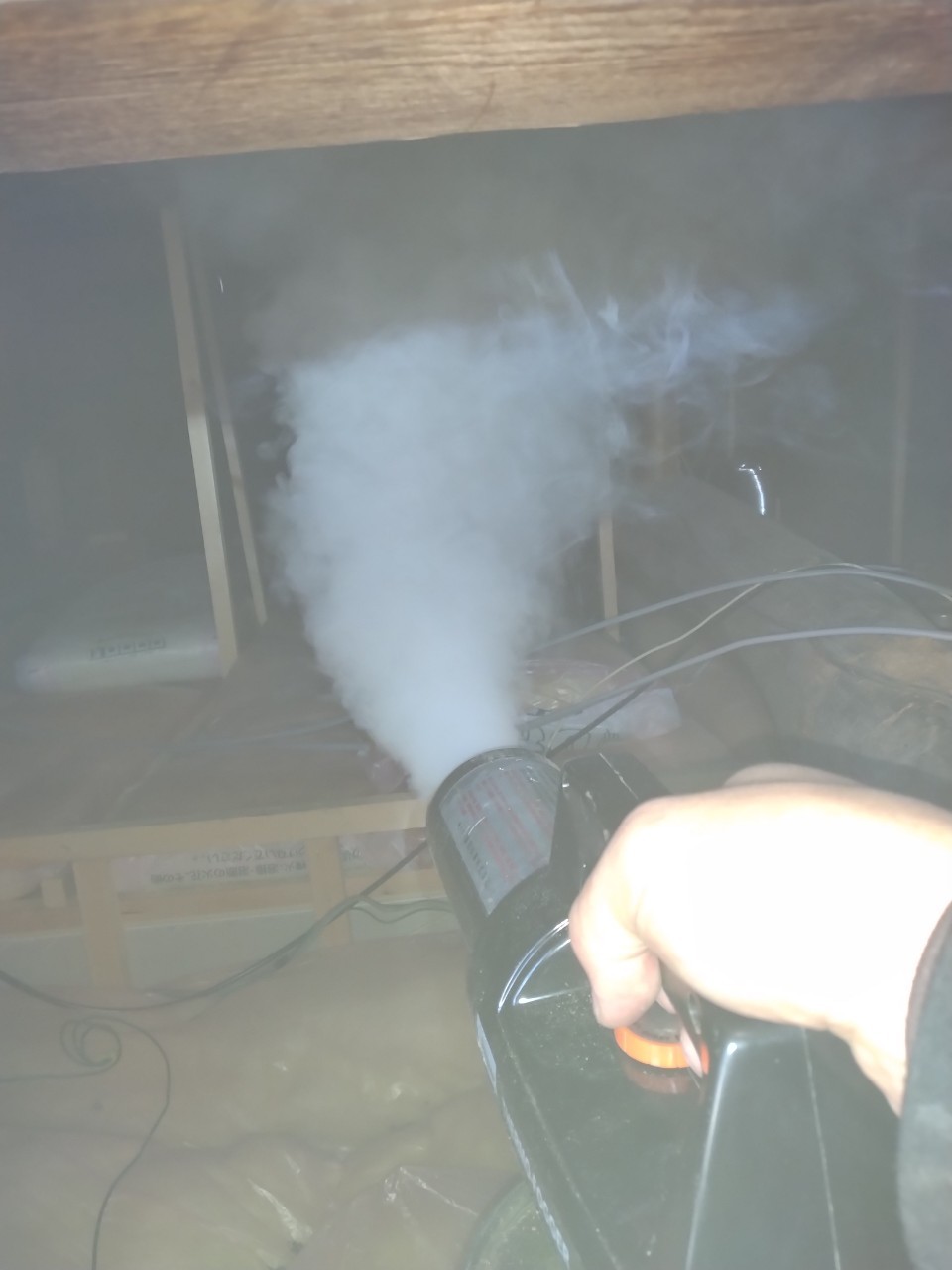 まずは、燻煙剤と呼ばれる薬剤を天井裏や床下に投入することで、ハクビシンを追い出していきます。