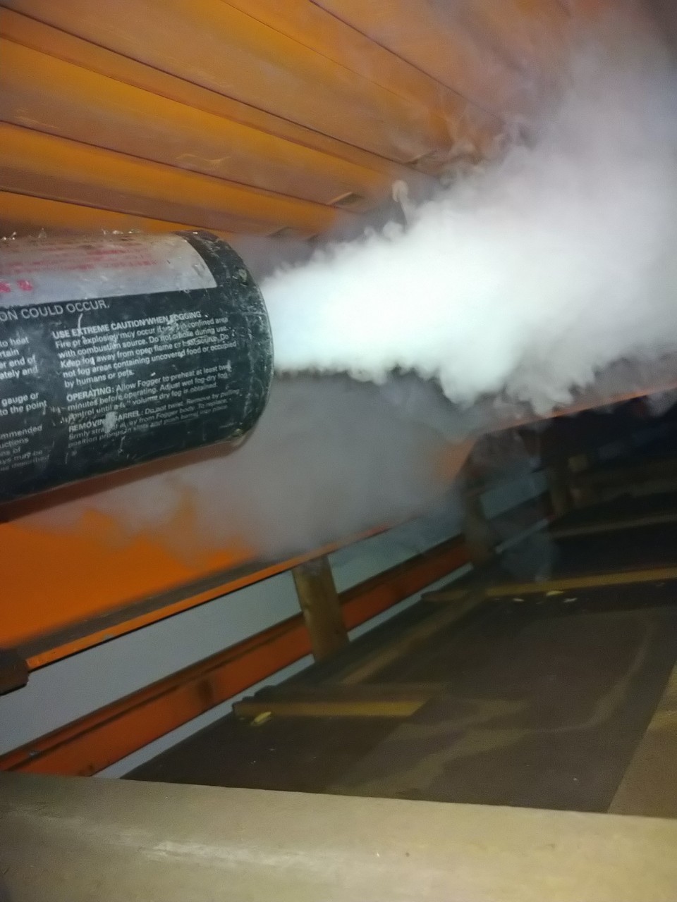 まずは、燻煙剤と呼ばれる薬剤を天井裏や床下に投入することで、イタチを追い出していきます。