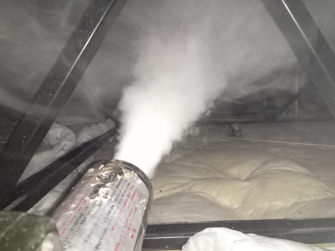 まずは、燻煙剤と呼ばれる薬剤を天井裏や床下に投入することで、コウモリを追い出していきます。