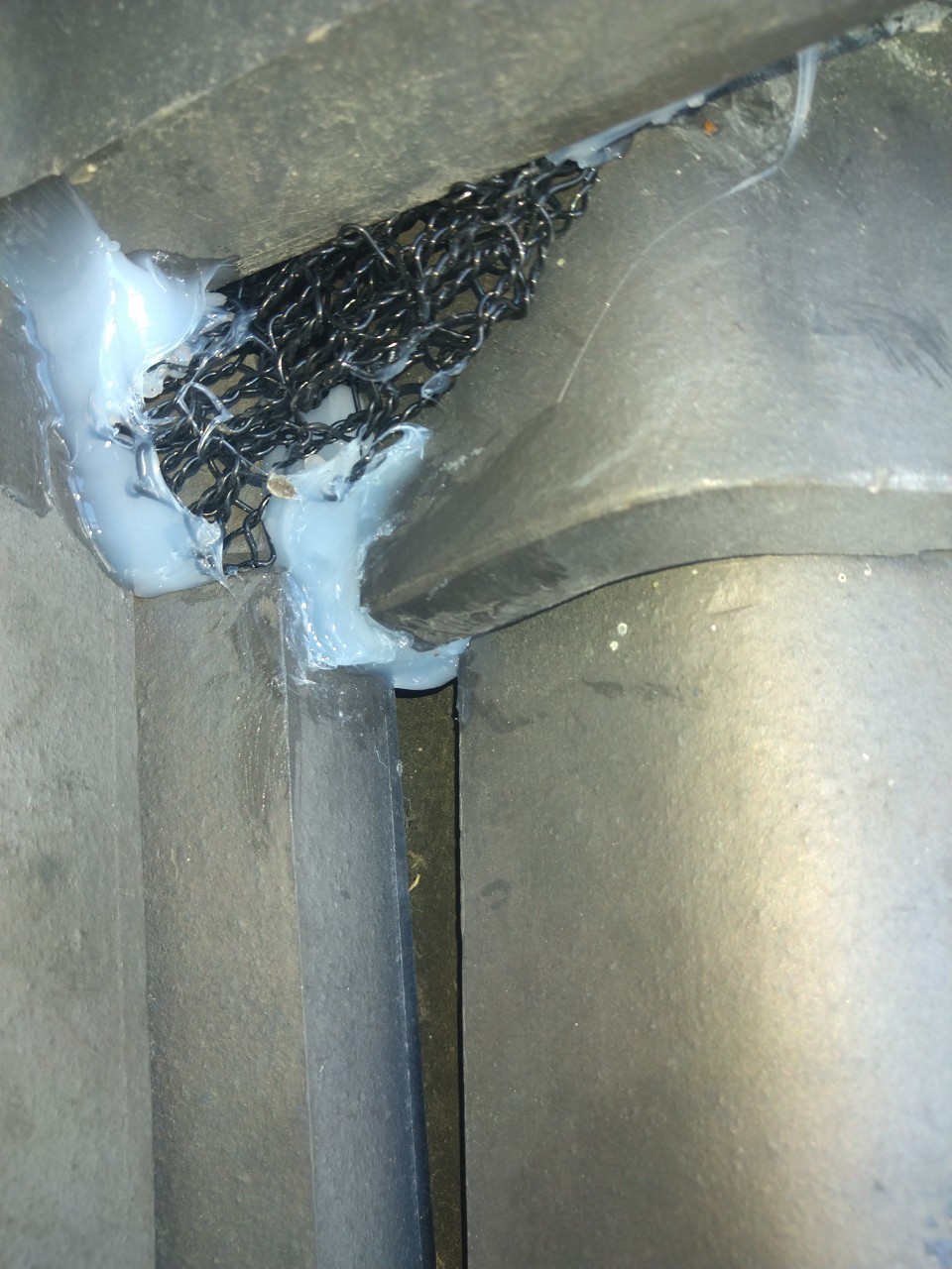 続いて、イタチの再侵入を防ぐために、パンチングメタルや金網、コーキング剤などを用いて侵入経路の封鎖を行います。