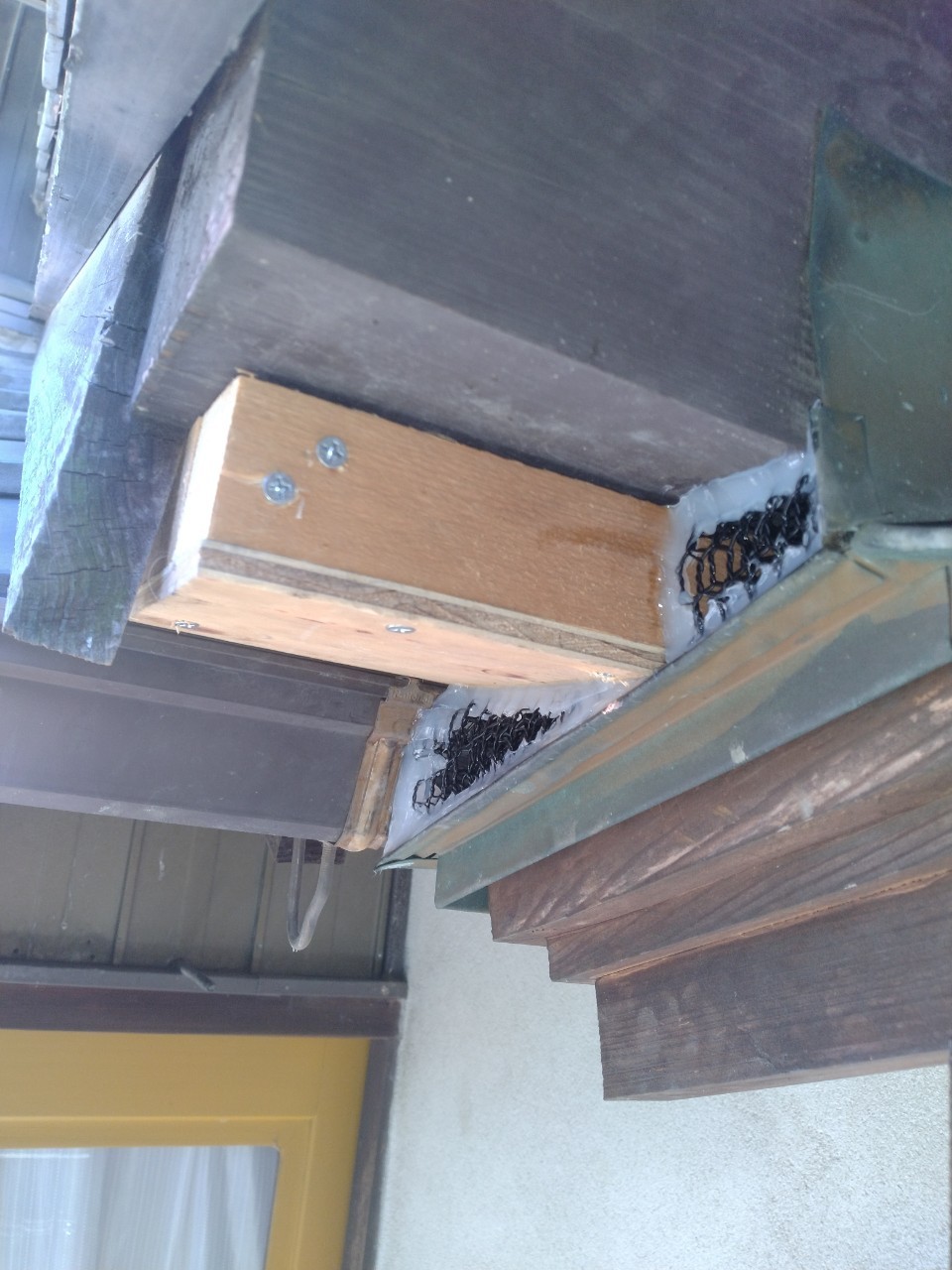 続いて、パンチングメタルや金網、コーキング剤などを用いて、あらゆる侵入経路を封鎖していきます。これによりハクビシンに限らず、他の害獣の再侵入も防ぐことができます。