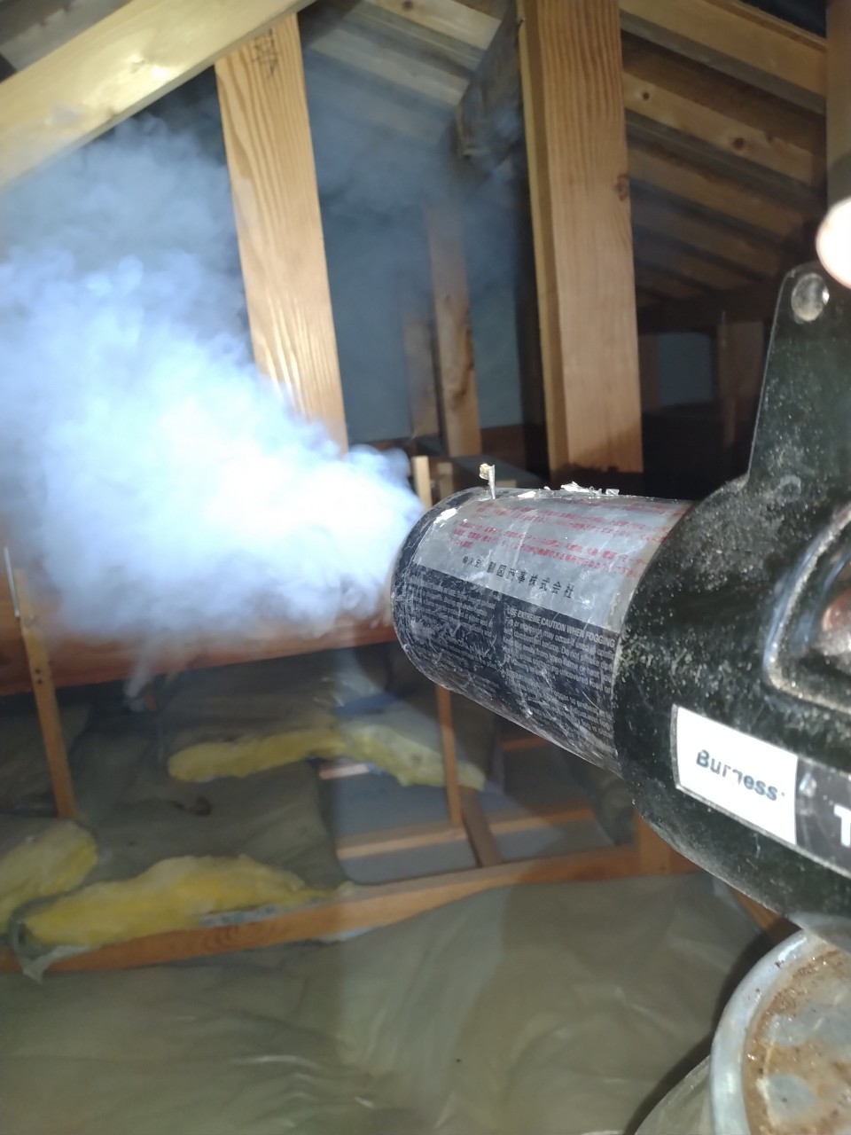 まずは、燻煙剤と呼ばれる薬剤を天井裏や床下に投入することで、コウモリを追い出していきます。