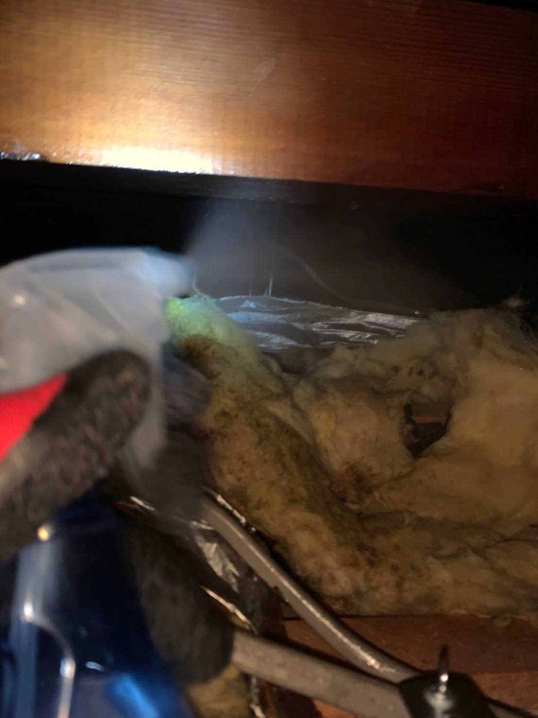 封鎖作業の後は、糞清掃や殺菌・消毒、マーキング消臭、ノミ・ダニ駆除、忌避剤散布・設置といった残りの行程を順序良く行い、終了です。