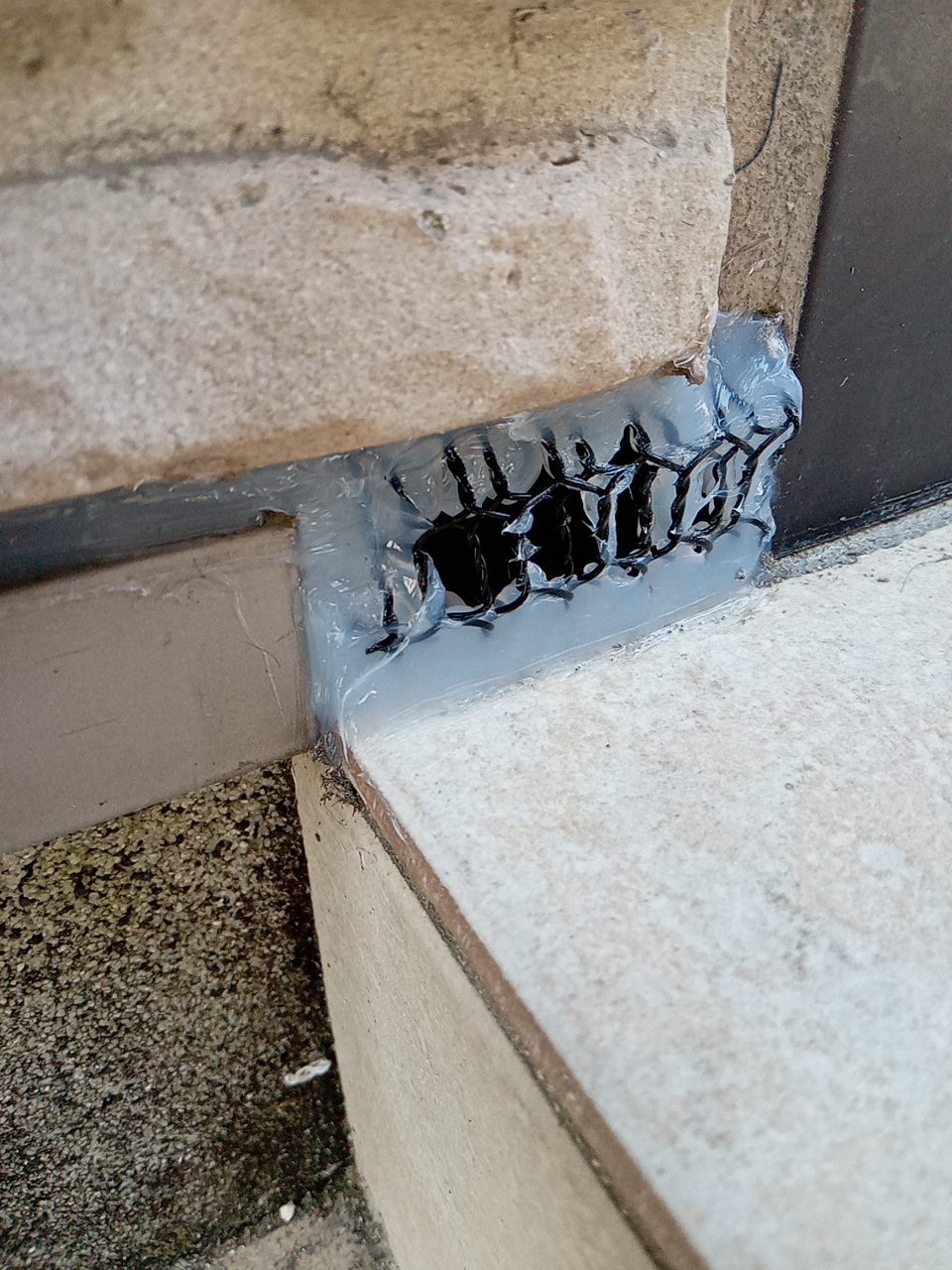 続いて、イタチの再侵入を防ぐために、パンチングメタルや金網、コーキング剤などを用いて侵入経路の封鎖を行います。