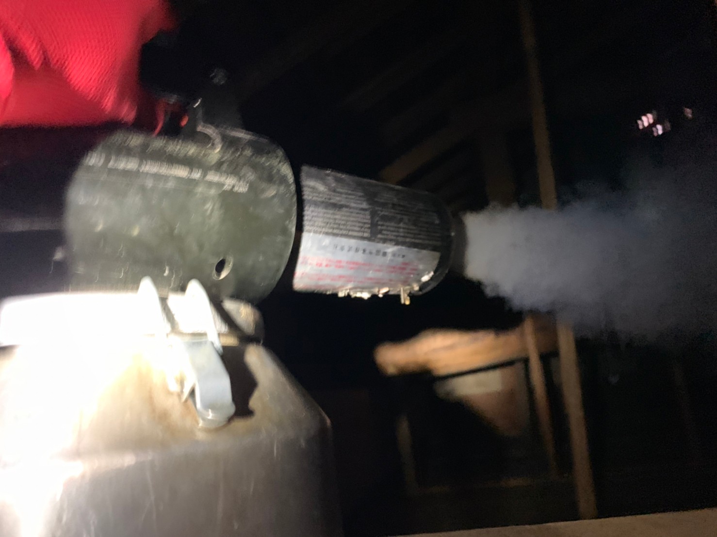 まずは、燻煙剤と呼ばれる薬剤を天井裏や床下に投入することで、コウモリを追い出していきます。