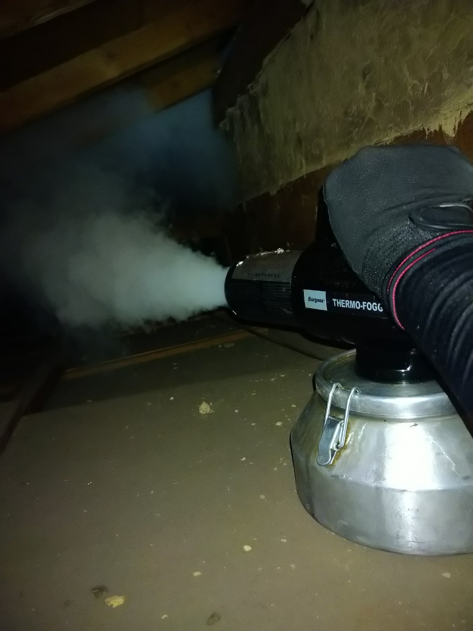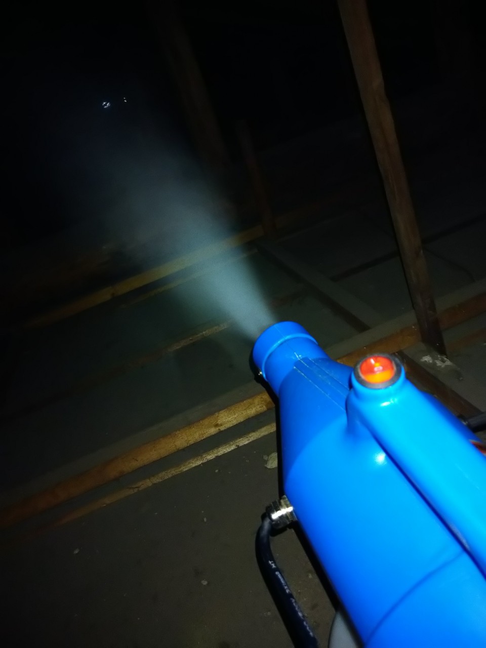 まずは、燻煙剤と呼ばれる薬剤を天井裏や床下に投入することで、イタチを追い出していきます。