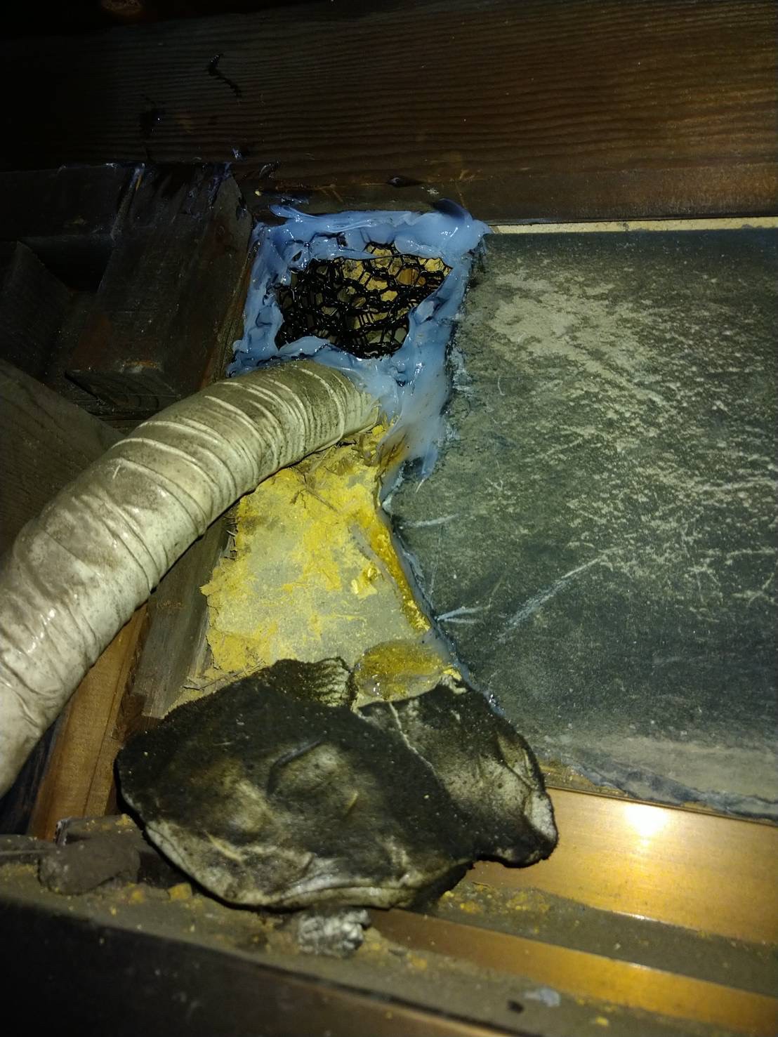 続いて、パンチングメタルや金網、コーキング剤などを用いて、あらゆる侵入経路を封鎖していきます。これによりハクビシンに限らず、他の害獣の再侵入も防ぐことができます。