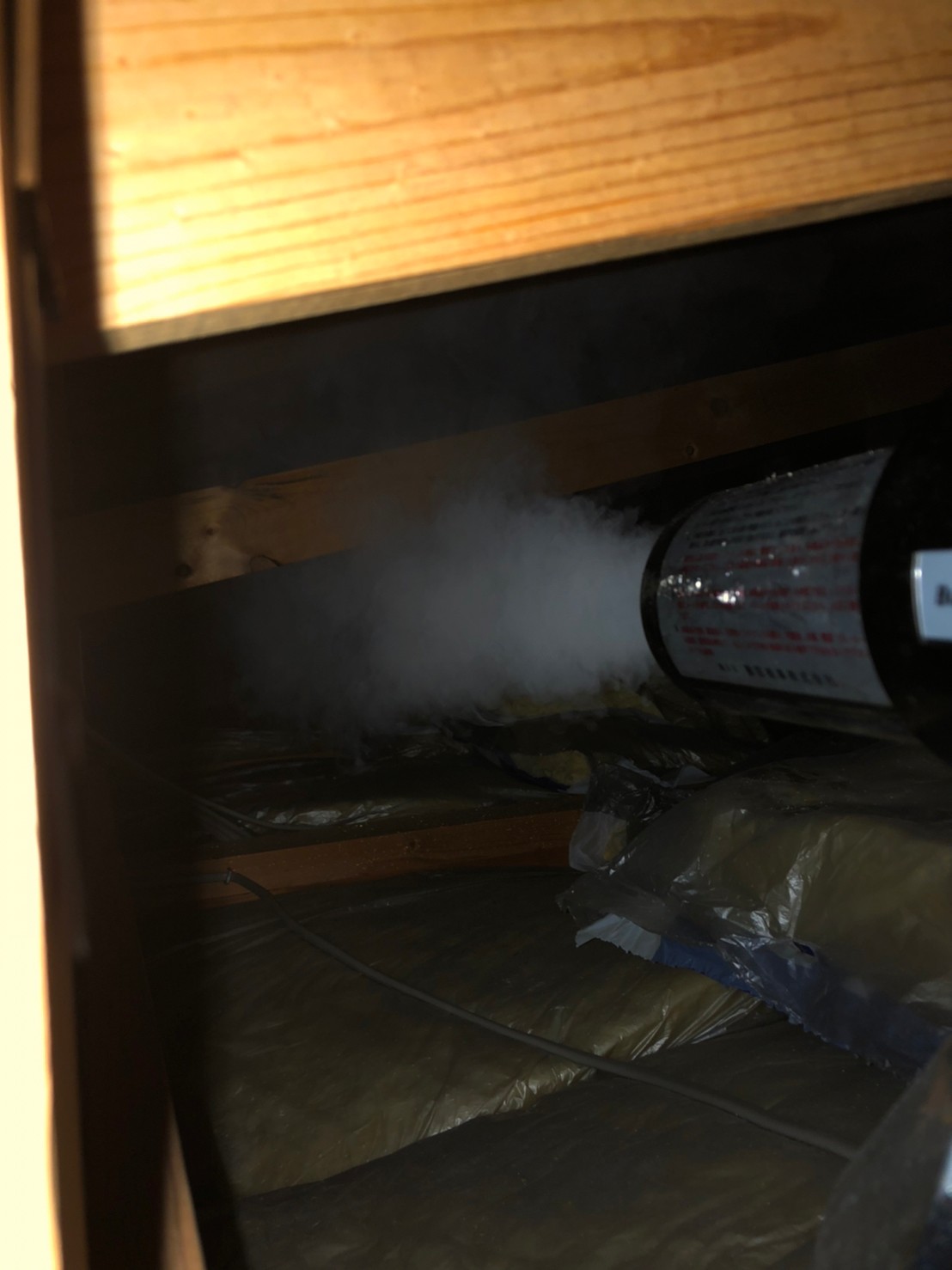 まずは、燻煙剤と呼ばれる薬剤を天井裏や床下に投入することで、コウモリを追い出していきます。