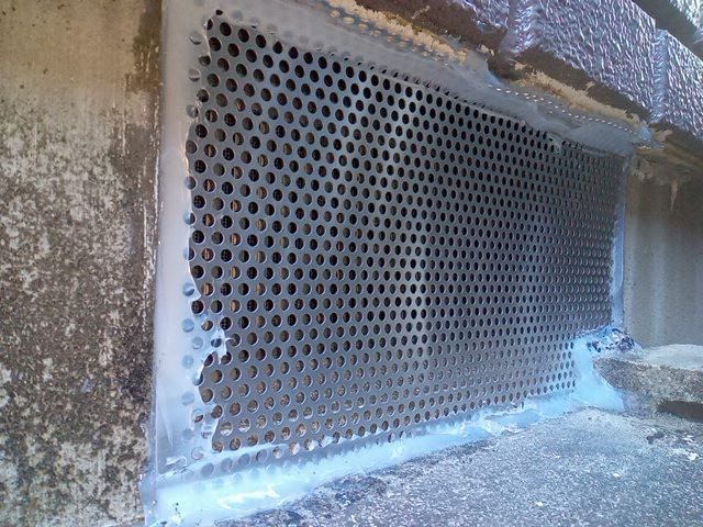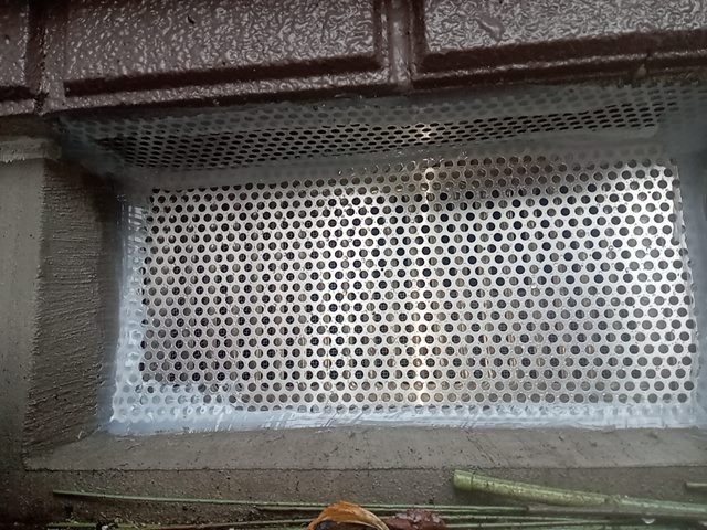 続いて、ハクビシンの再侵入を防ぐために、パンチングメタルや金網、コーキング剤などを用いて侵入経路の封鎖を行います。