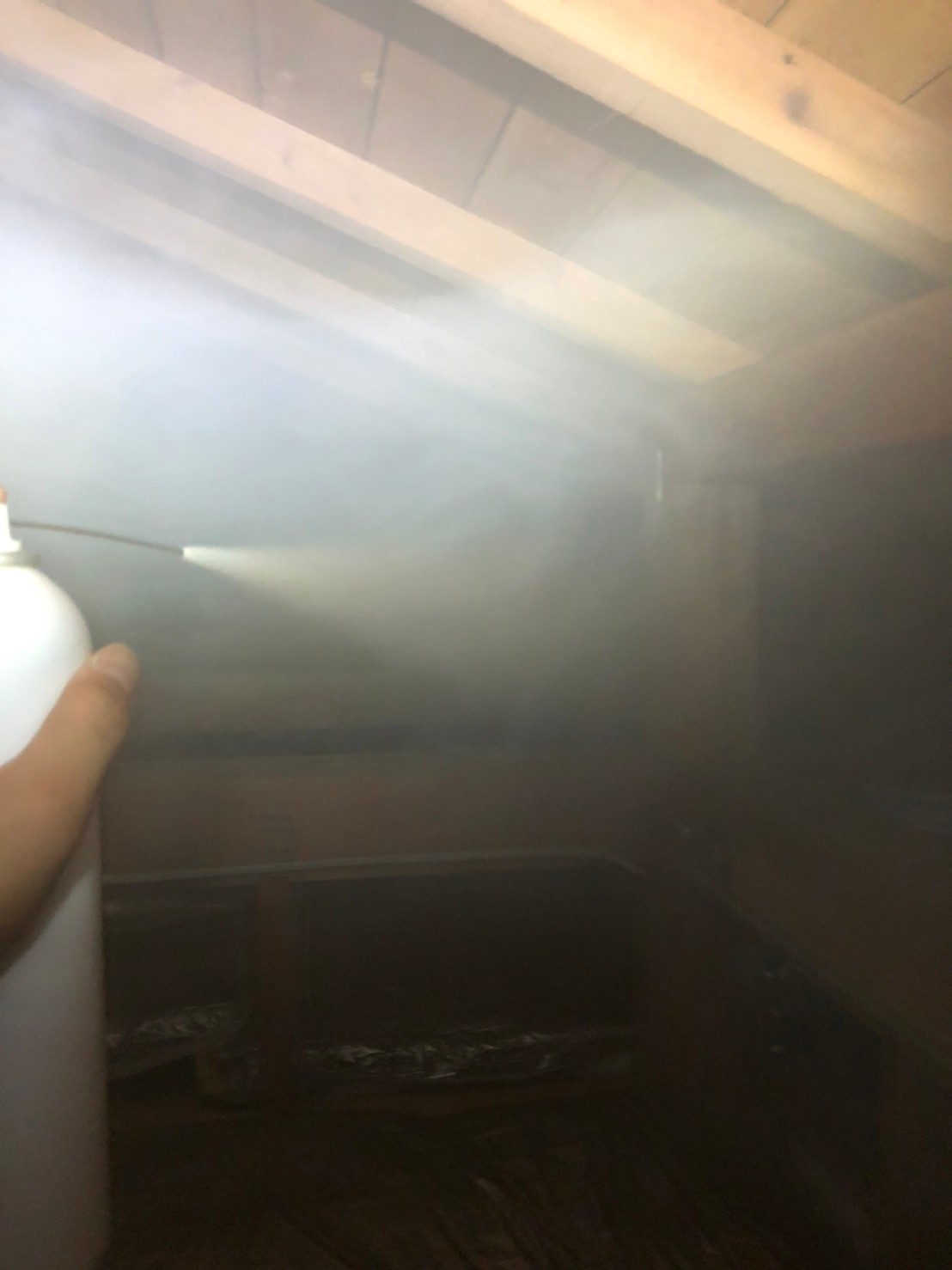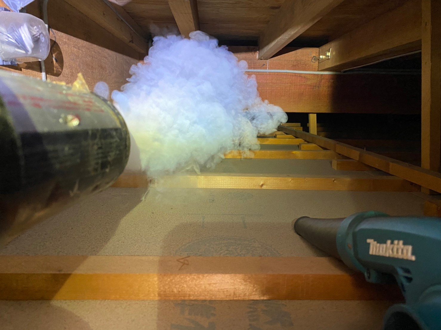 まずは、燻煙剤と呼ばれる薬剤を天井裏や床下に投入することで、コウモリを追い出していきます。