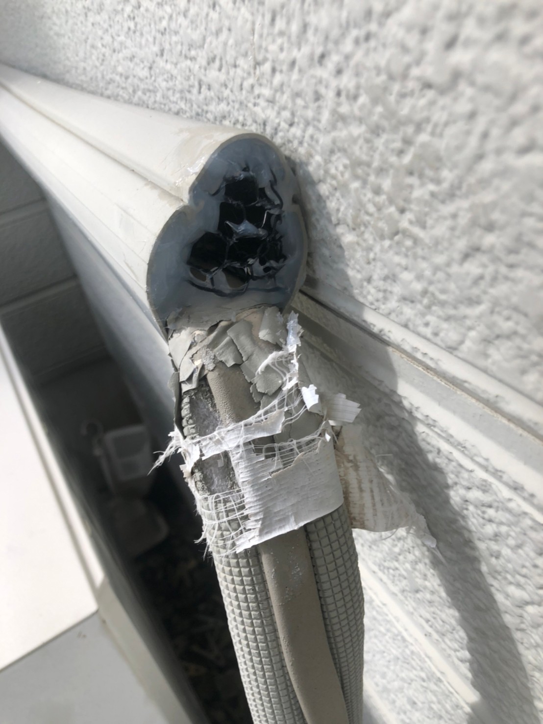 瓦の隙間や外壁の隙間、エアコン配管の隙間等がコウモリの侵入経路と疑われました。