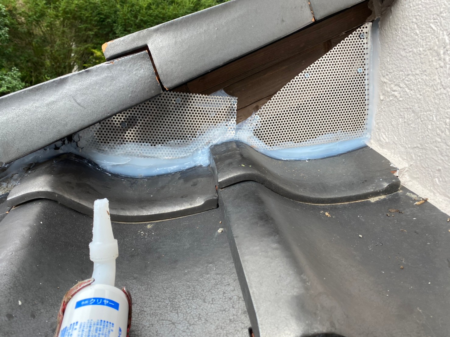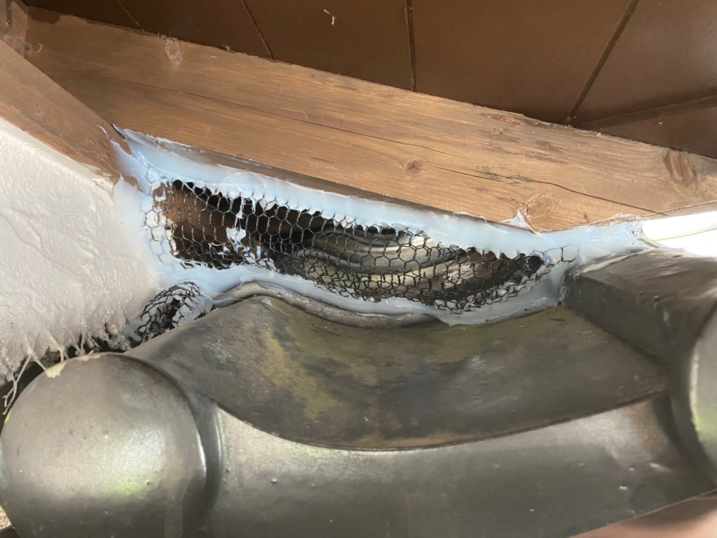 続いて、パンチングメタルや金網、コーキング剤などを用いて、あらゆる侵入経路を封鎖していきます。これによりネズミに限らず、他の害獣の再侵入も防ぐことができます。