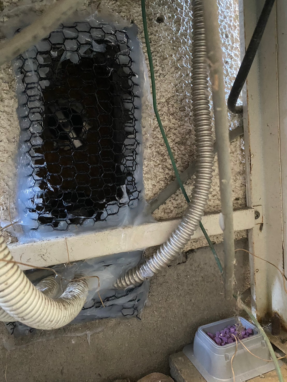外壁の隙間やエアコン配管の隙間、床下通風口といった場所から、ネズミが建物内へ侵入しており、糞尿による悪臭やノミ・ダニ被害、衛生面での不安などの理由からお問い合わせをいただきました。