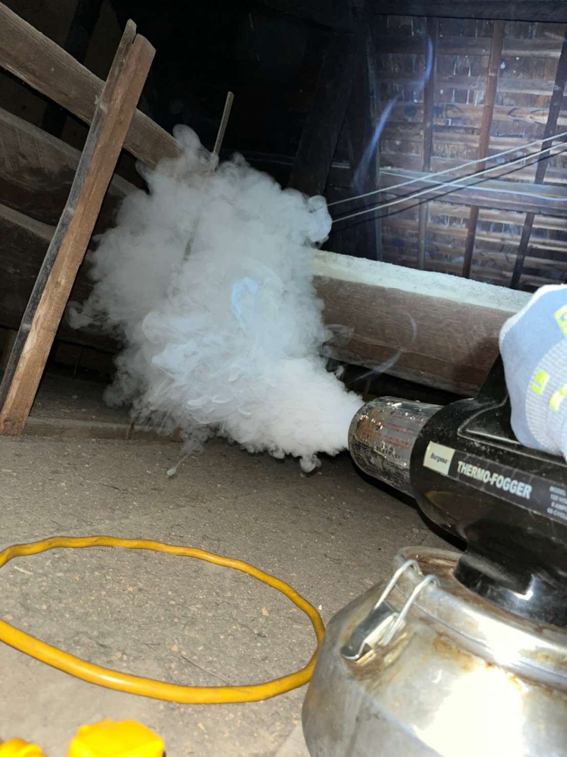 まずは、燻煙剤と呼ばれる薬剤を天井裏や床下に投入することで、ハクビシンを追い出していきます。