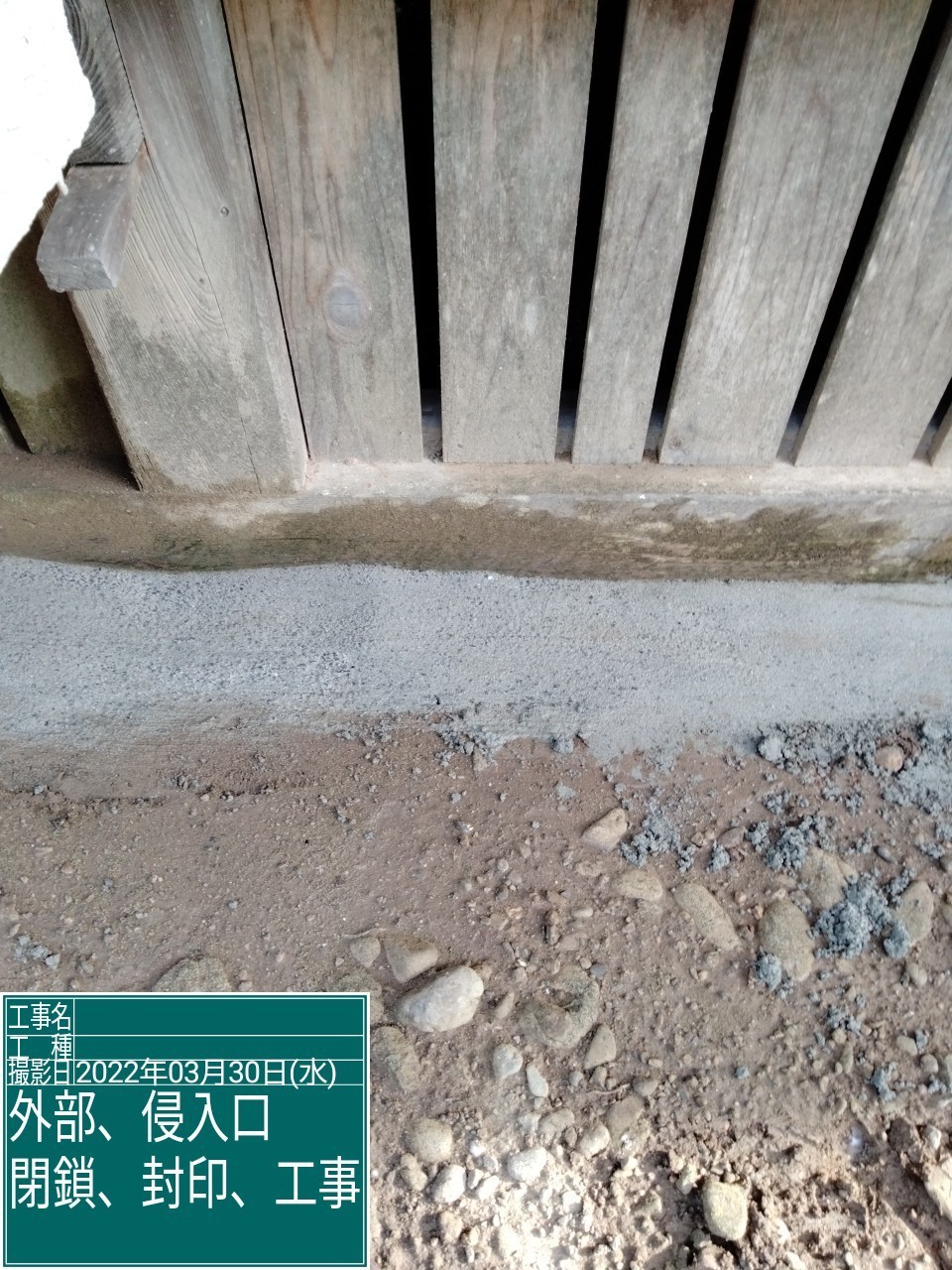 封鎖作業の後は、糞清掃といった残りの行程を順序良く行い、終了です。