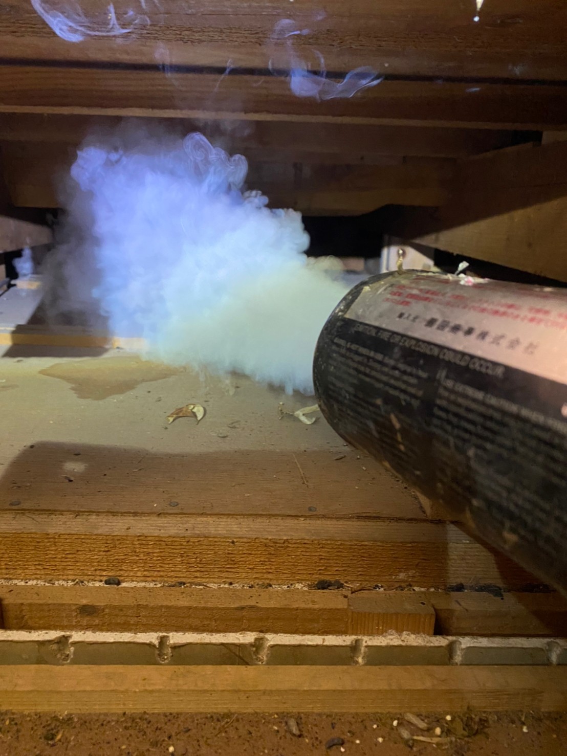 まずは、燻煙剤と呼ばれる薬剤を天井裏や床下に投入することで、ハクビシンを追い出していきます。