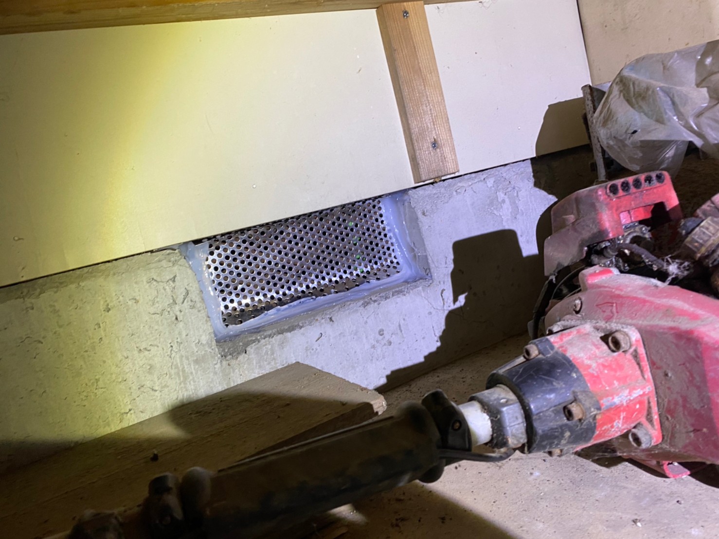 続いて、パンチングメタルや金網、コーキング剤などを用いて、あらゆる侵入経路を封鎖していきます。これによりハクビシンに限らず、他の害獣の再侵入も防ぐことができます。